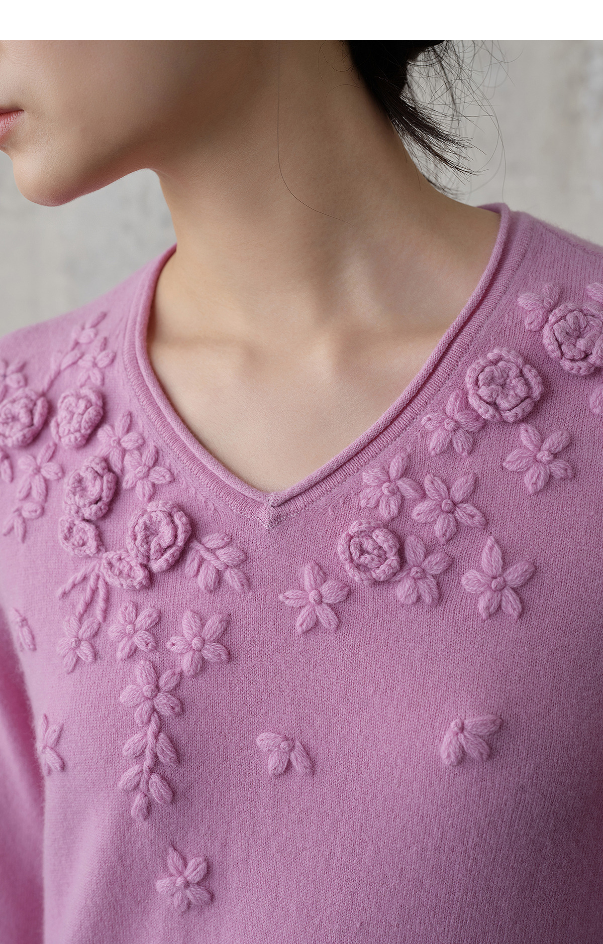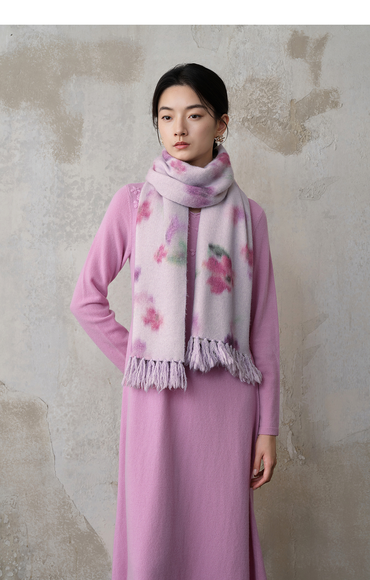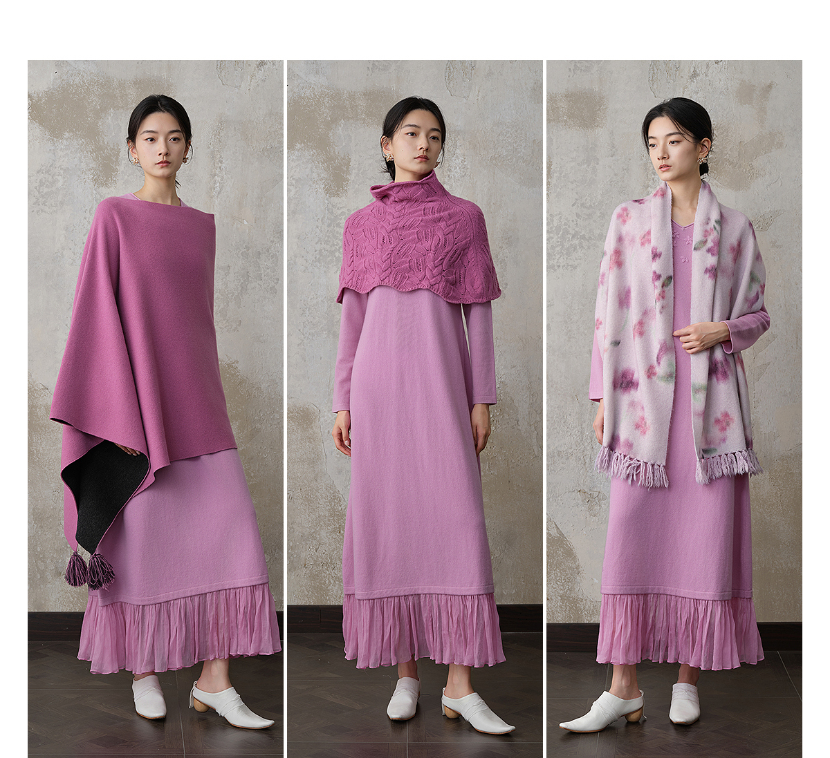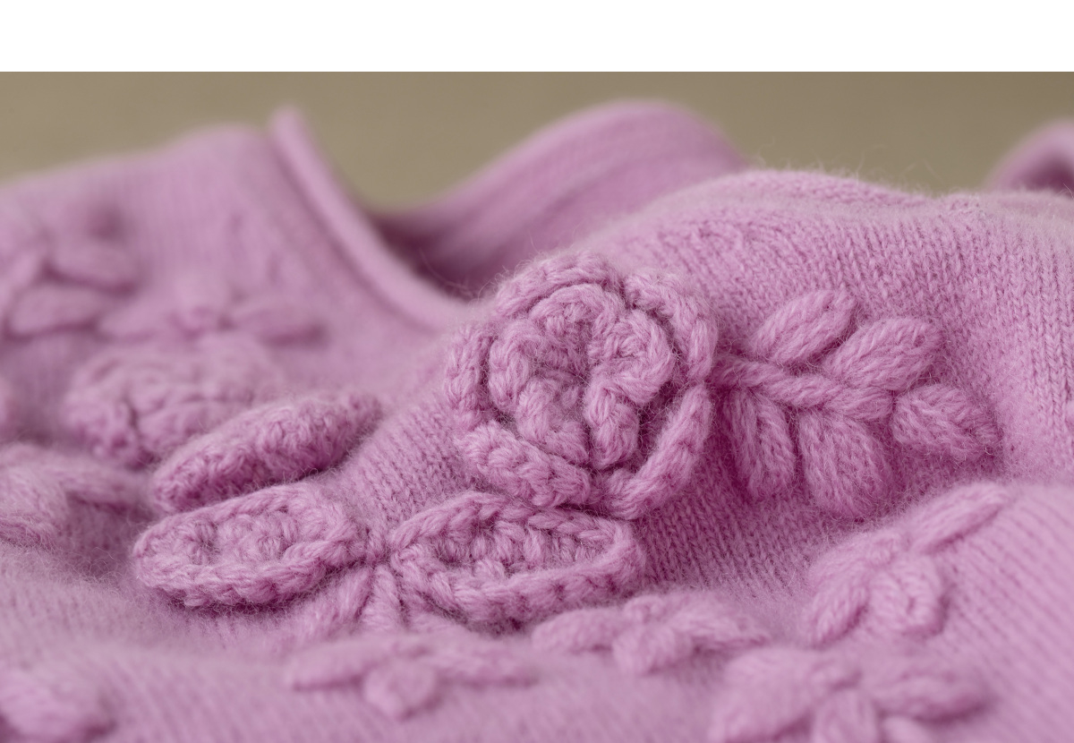 【林栖设计小店】(现货)【手工钩花】木槿粉听风系列绵羊毛连衣裙拼桑蚕丝2025秋冬新款毛织长裙1954061