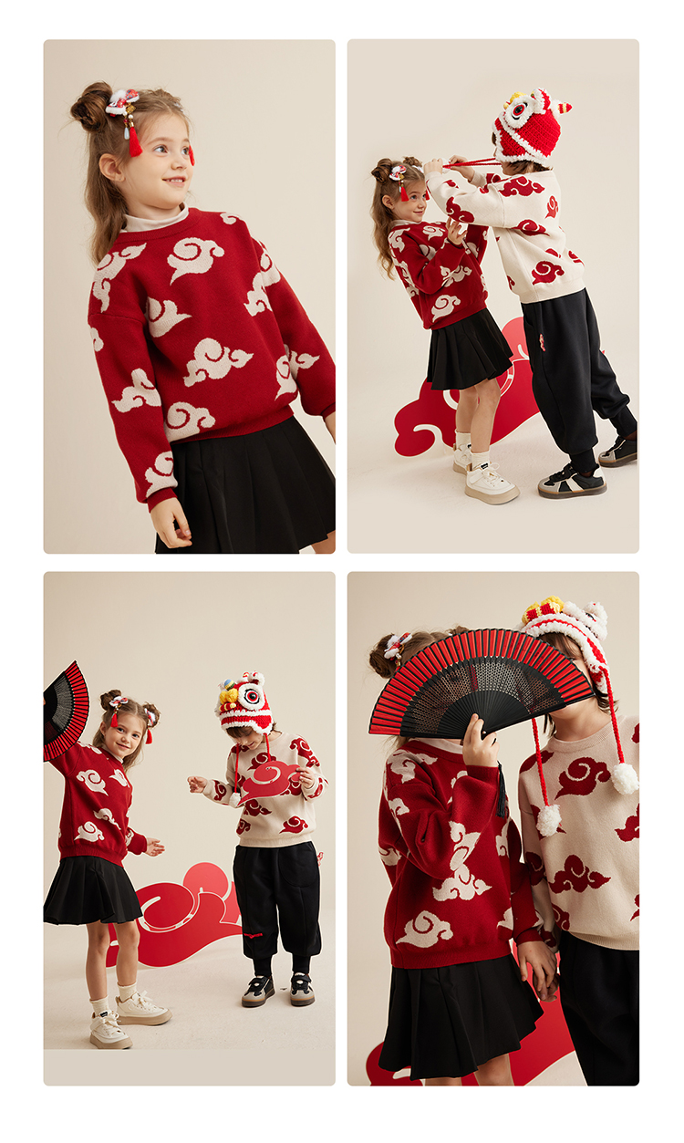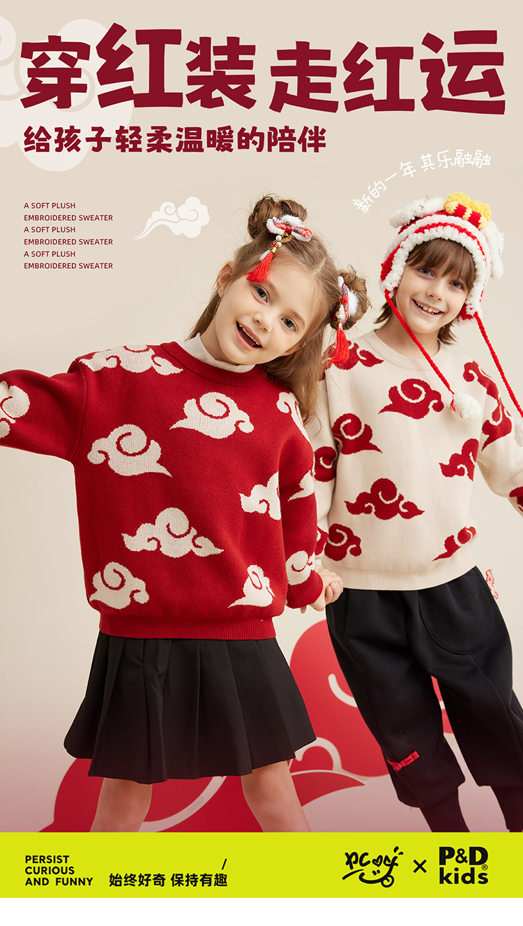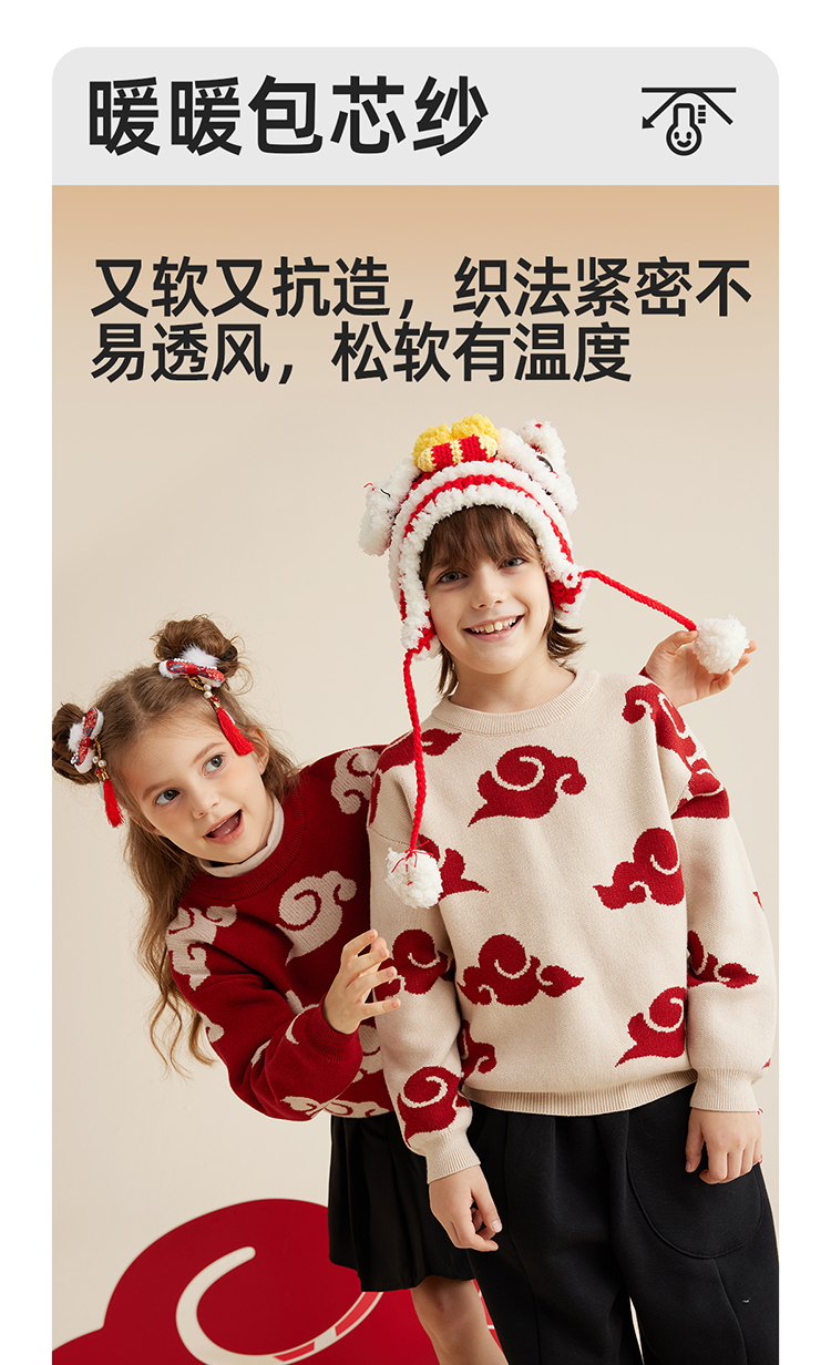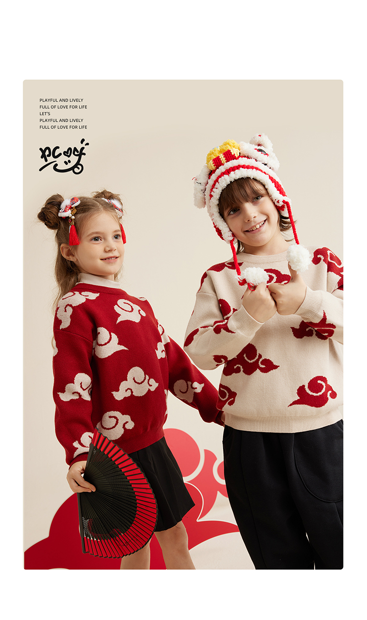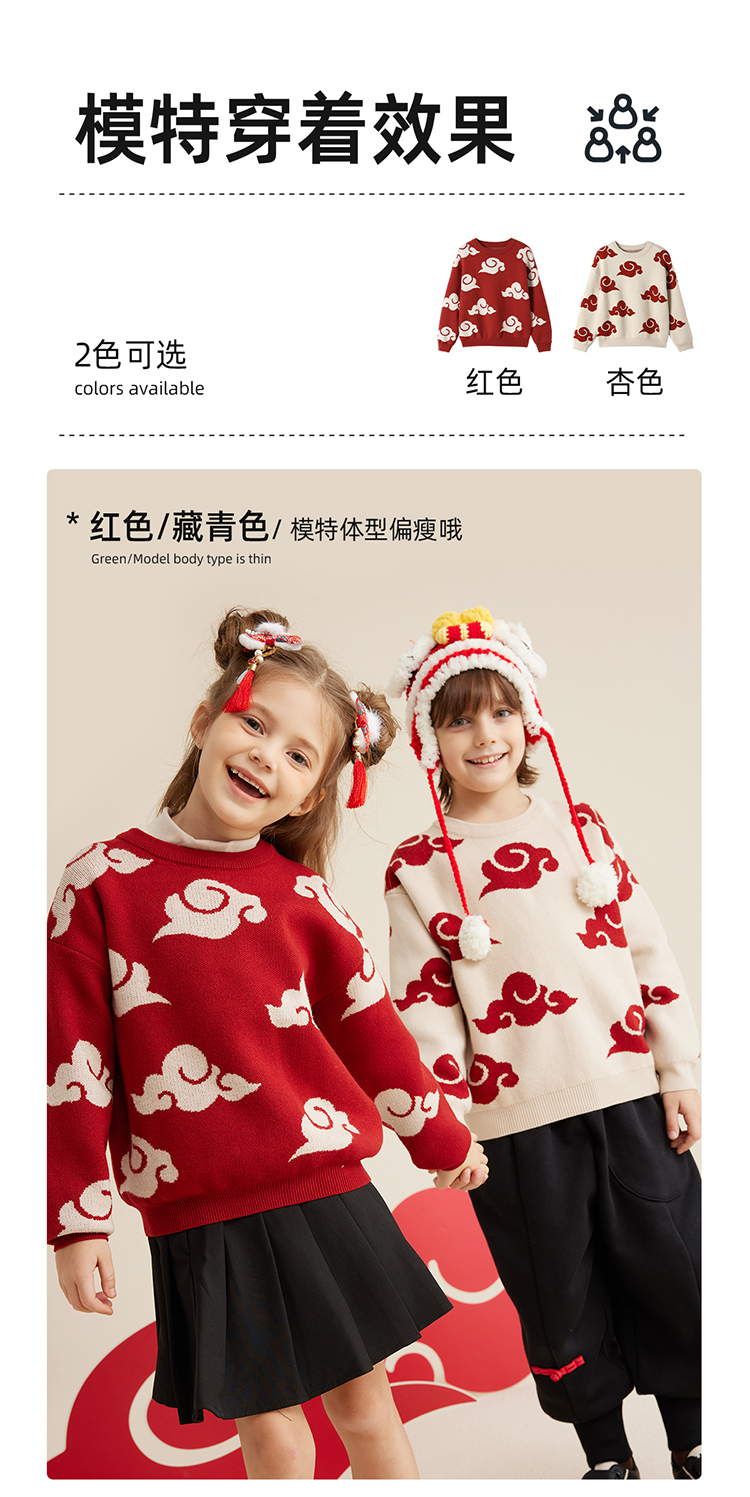 【秋冬上新】【穿红装走鸿运】儿童新年氛围感祥云提花毛衣PDMY2303
