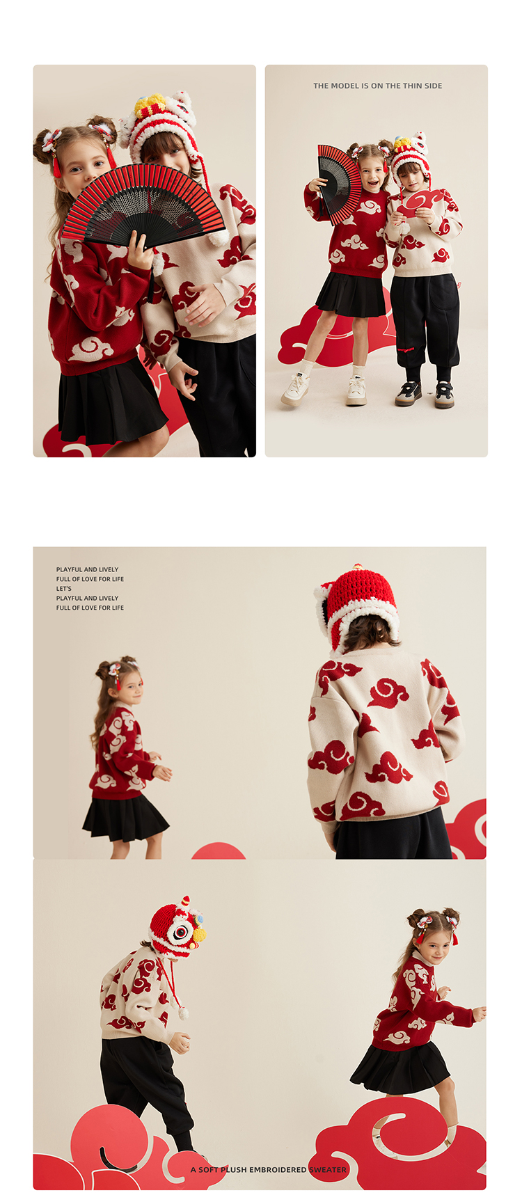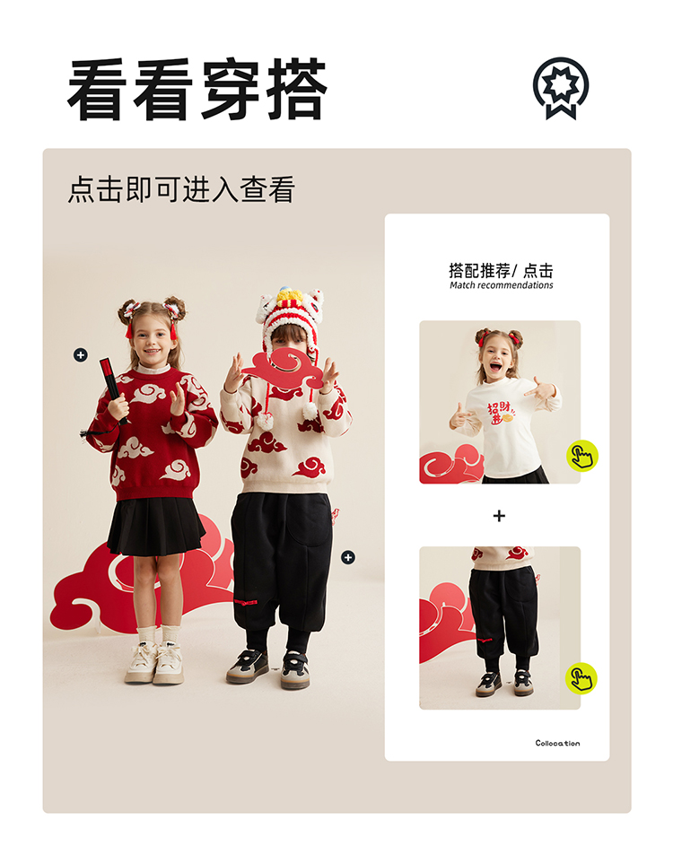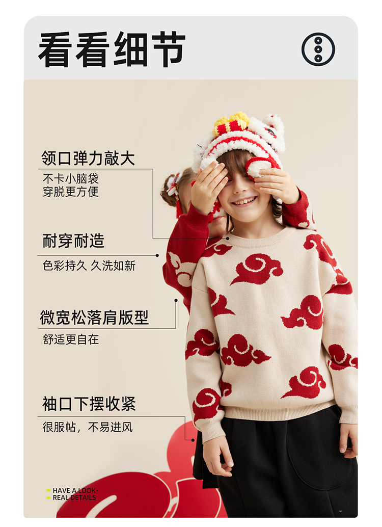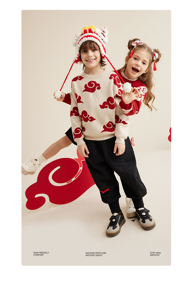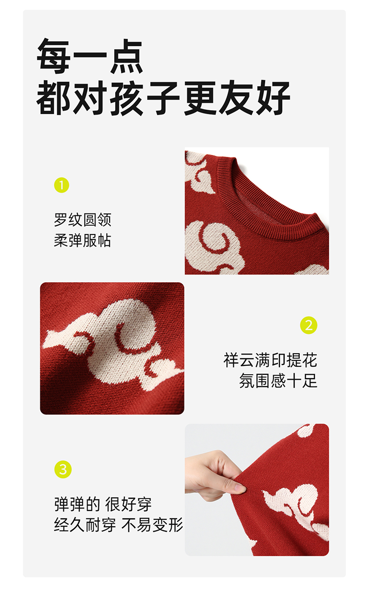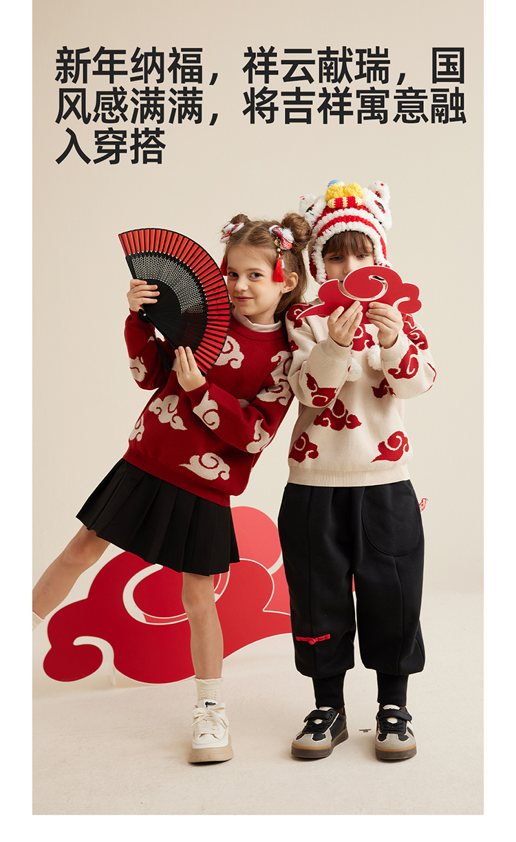 【秋冬上新】【穿红装走鸿运】儿童新年氛围感祥云提花毛衣PDMY2303