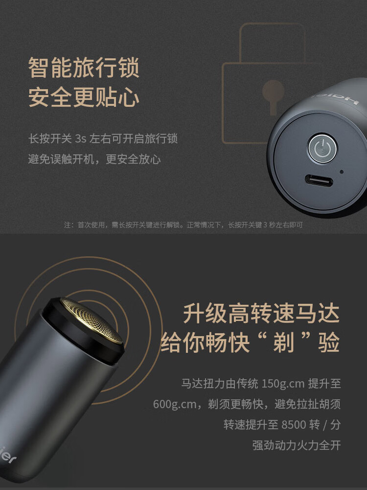 海尔剃须刀 电动迷你水洗刮胡刀充电式男士便携胡须刀HSQ1-2217 伯爵绿(升级版)