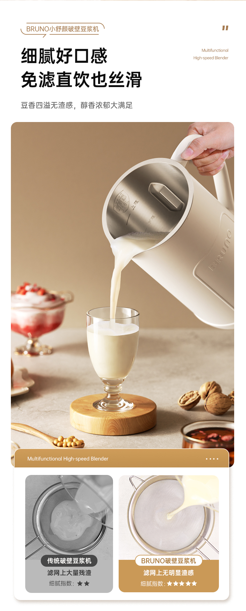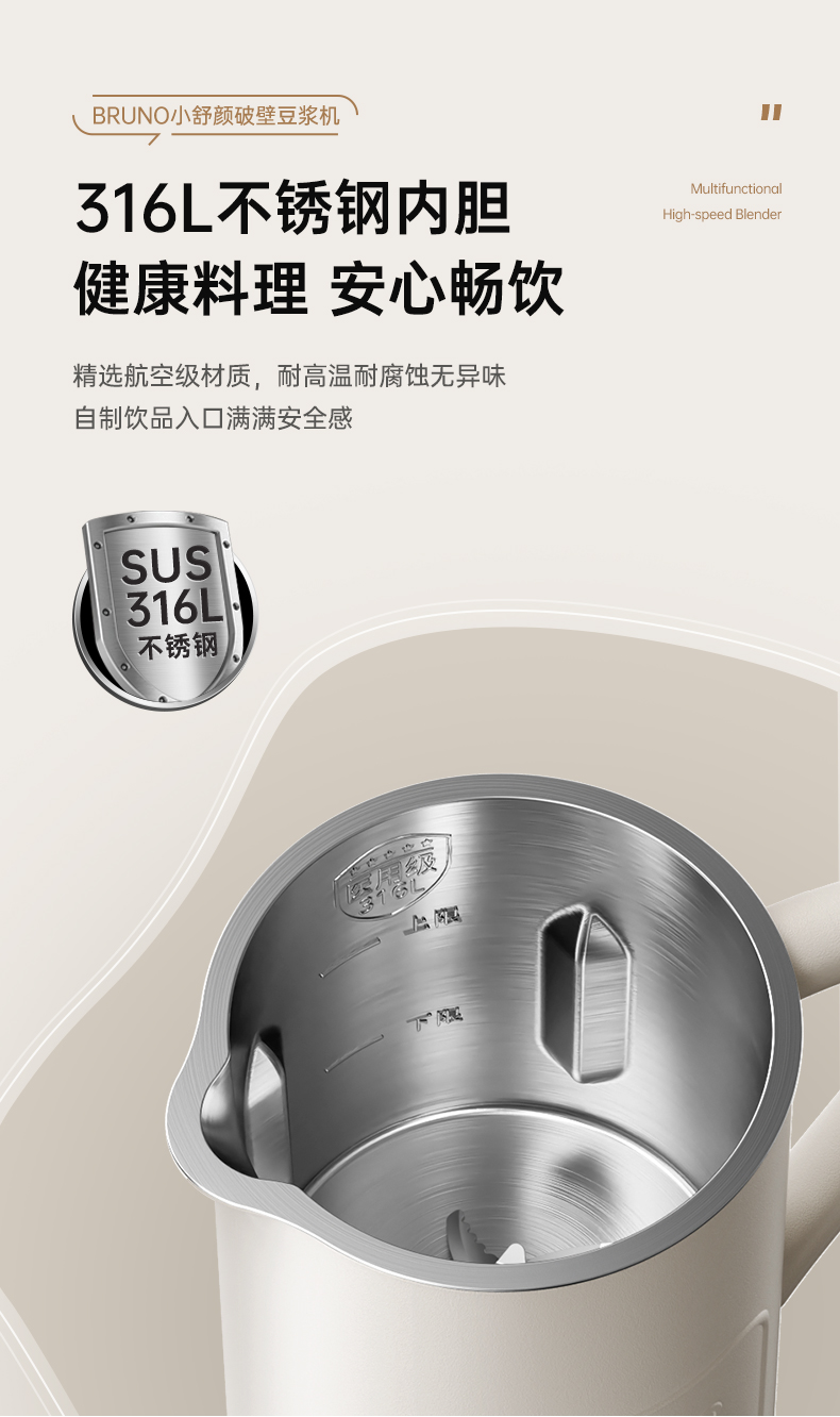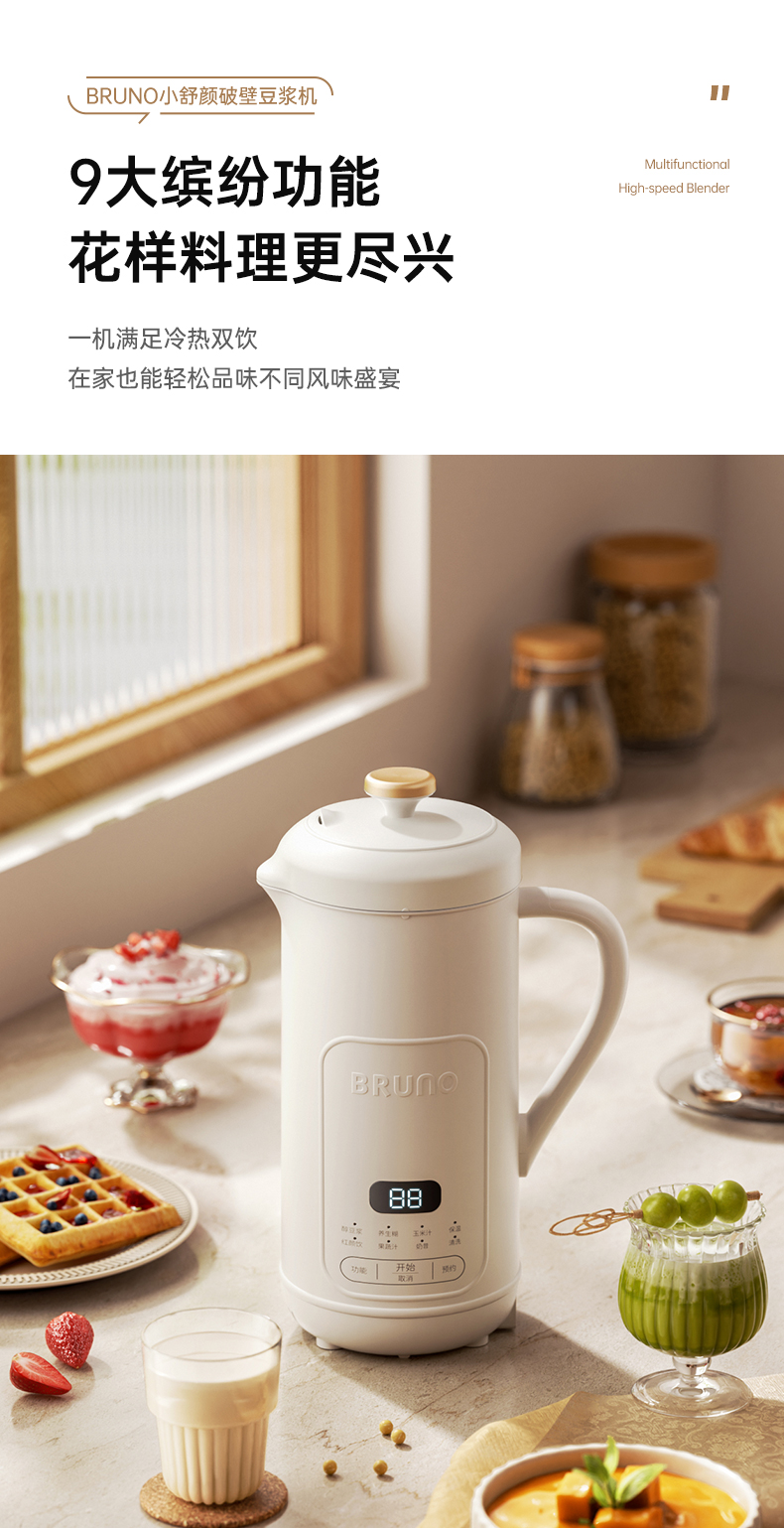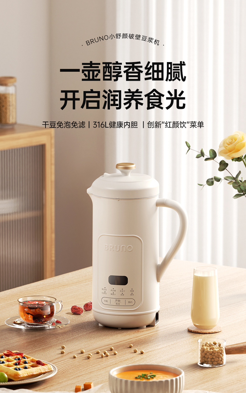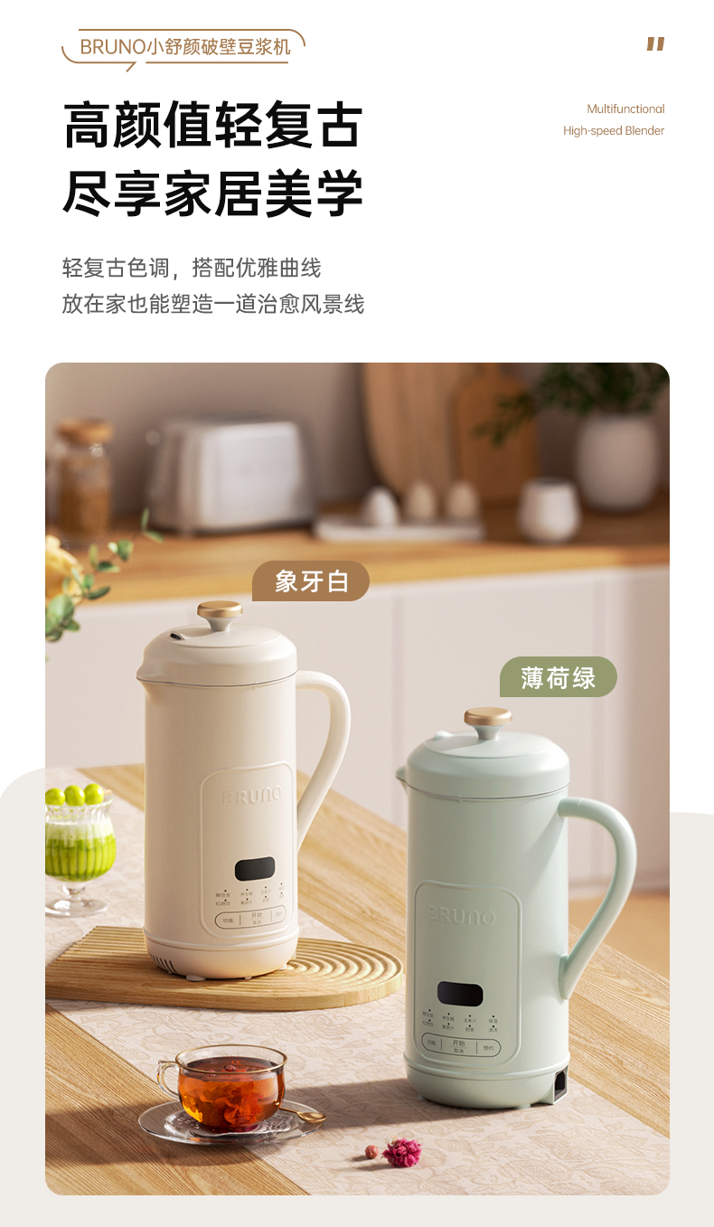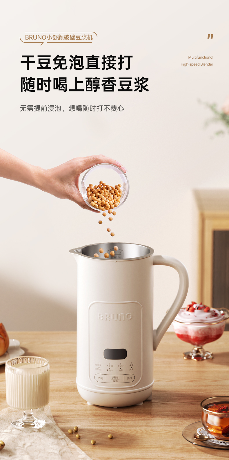 【BRUNO破壁机豆浆机】迷你家用全自动多功能,干豆直打,迷你低噪音新款,316L不锈钢新款7天无理由(不影响二次销售),一年保修