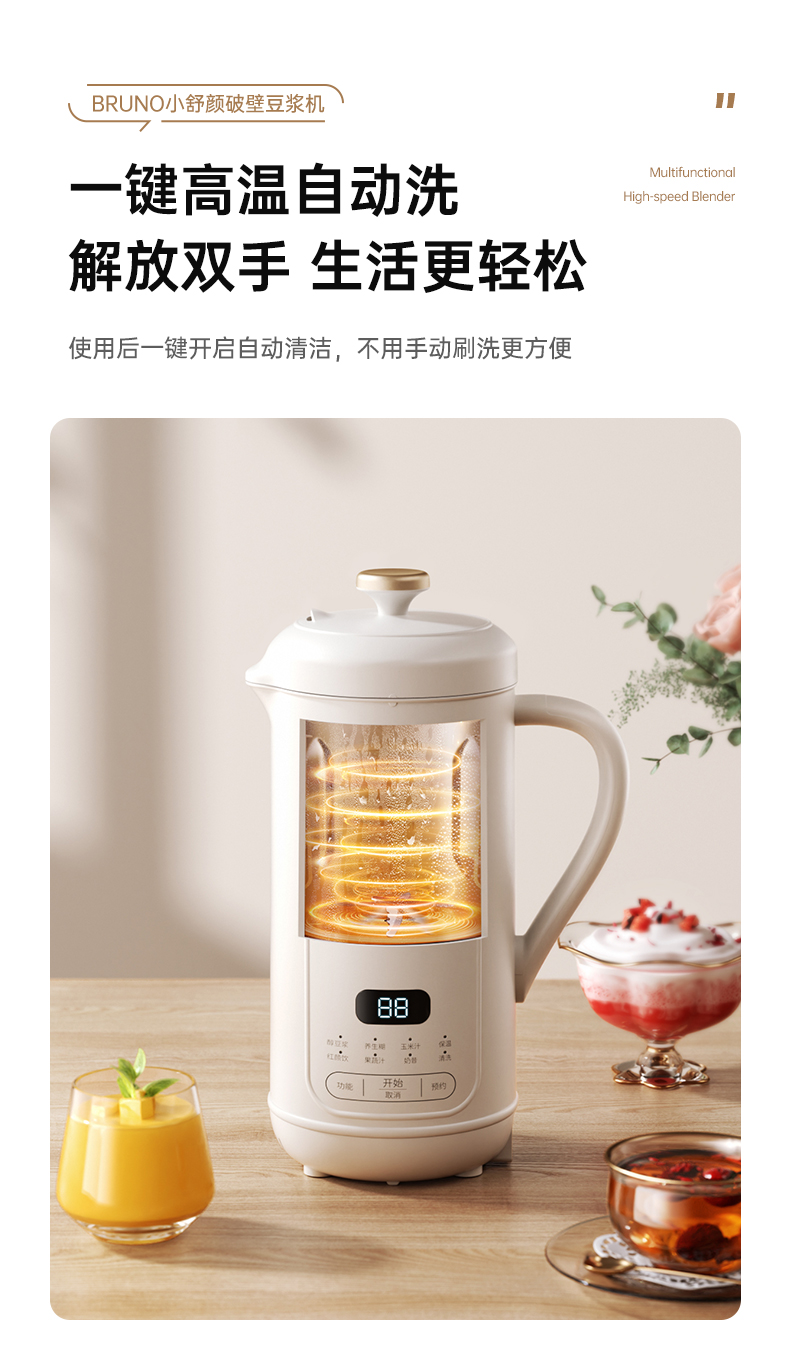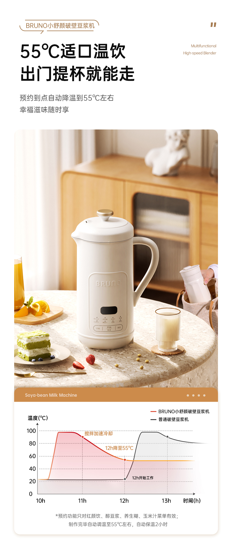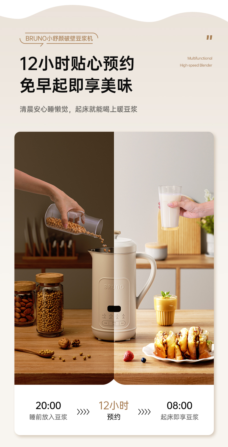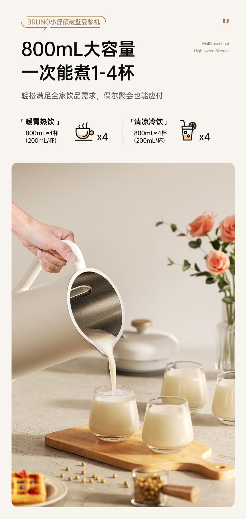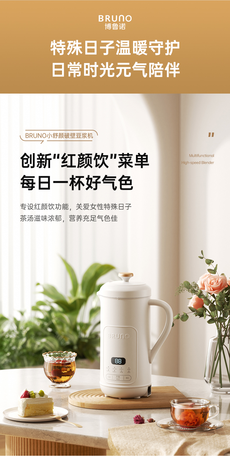 【BRUNO破壁机豆浆机】迷你家用全自动多功能,干豆直打,迷你低噪音新款,316L不锈钢新款7天无理由(不影响二次销售),一年保修