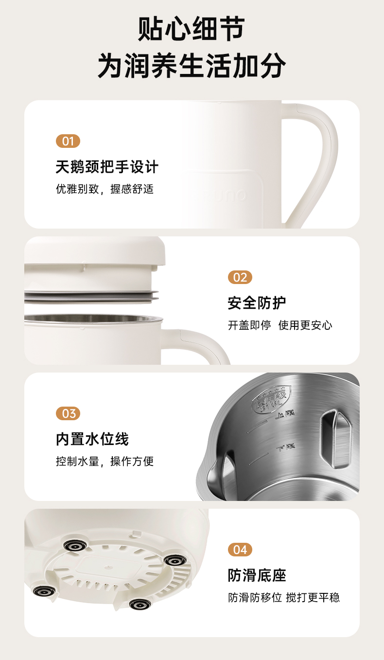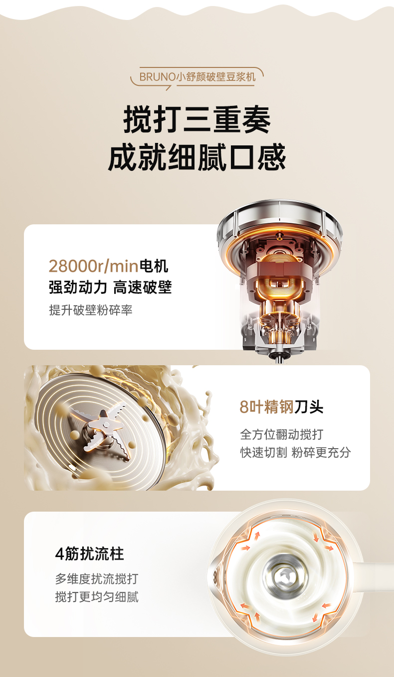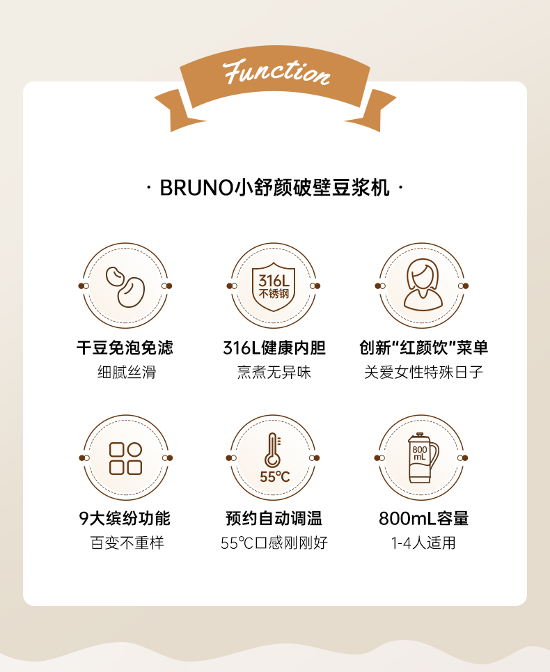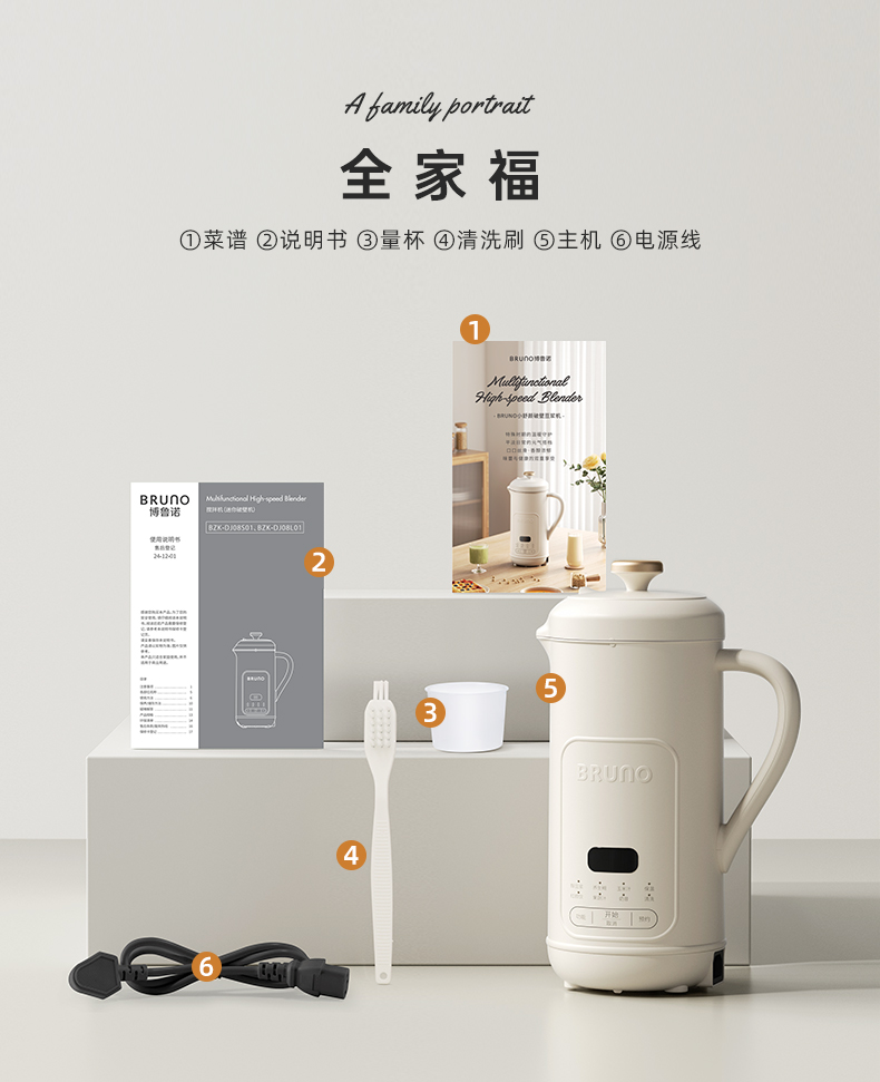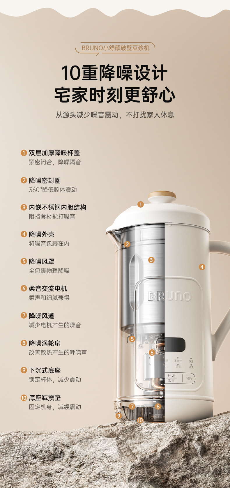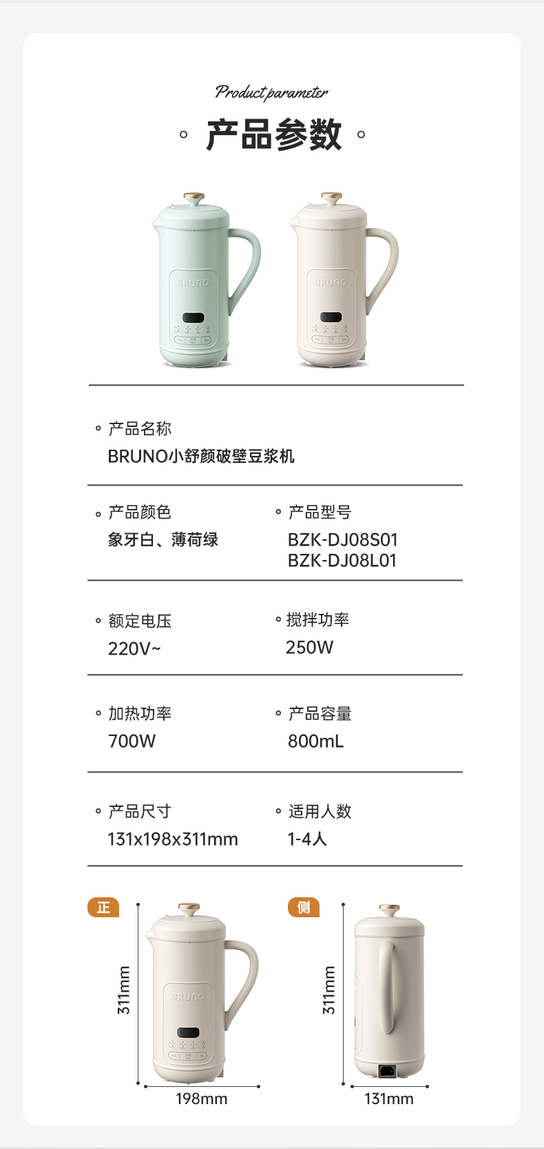 【BRUNO破壁机豆浆机】迷你家用全自动多功能,干豆直打,迷你低噪音新款,316L不锈钢新款7天无理由(不影响二次销售),一年保修