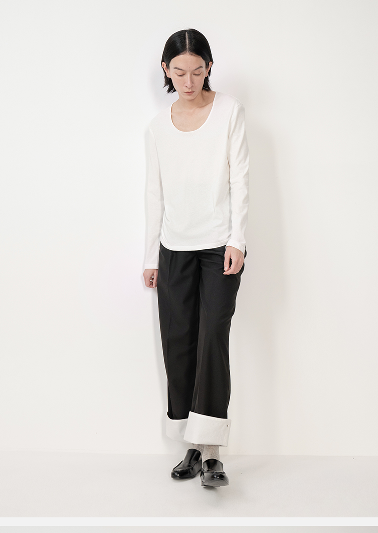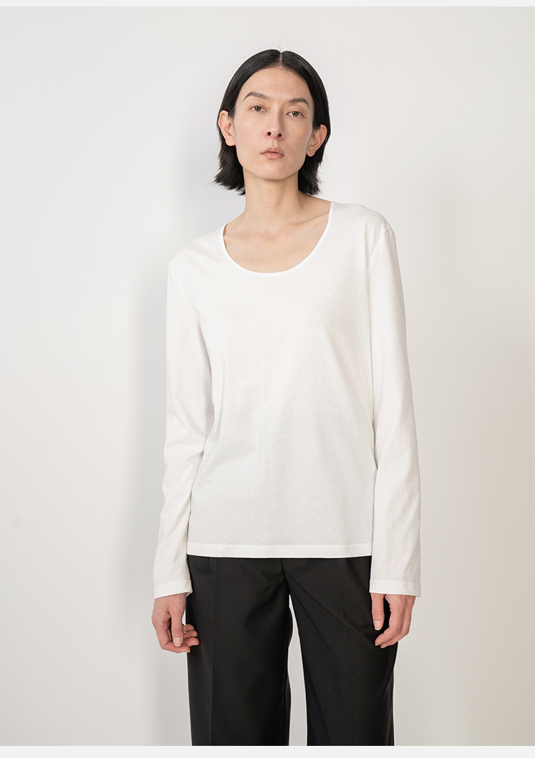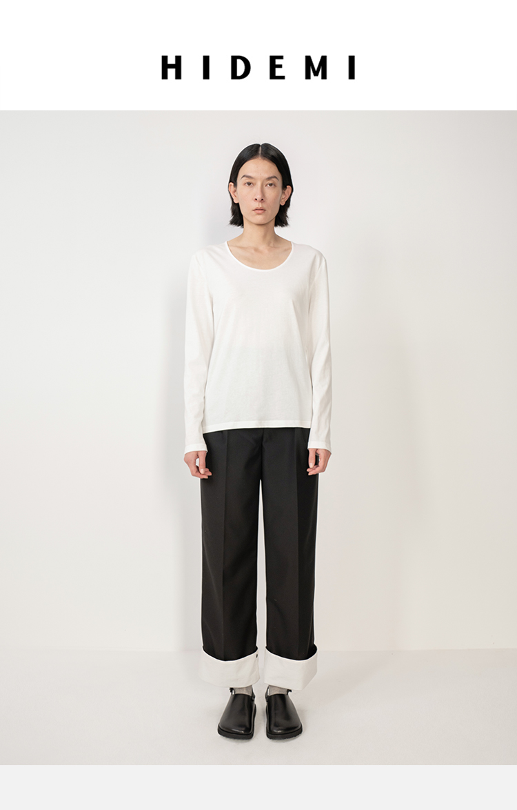 HIDEMI 云朵系极简大圆领柔软长袖T恤