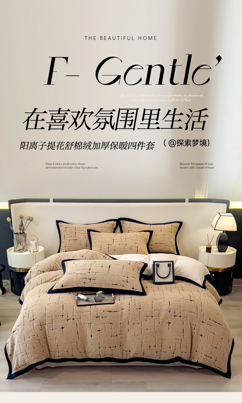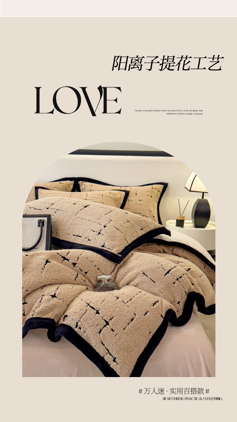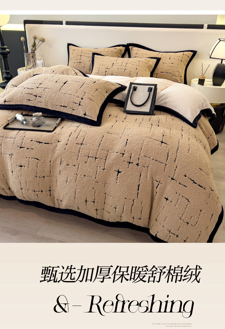 秋冬黑白森林阳离子提花舒棉绒加厚保暖四件套