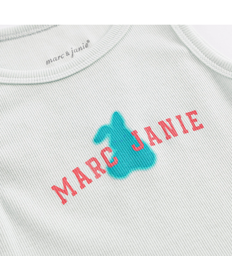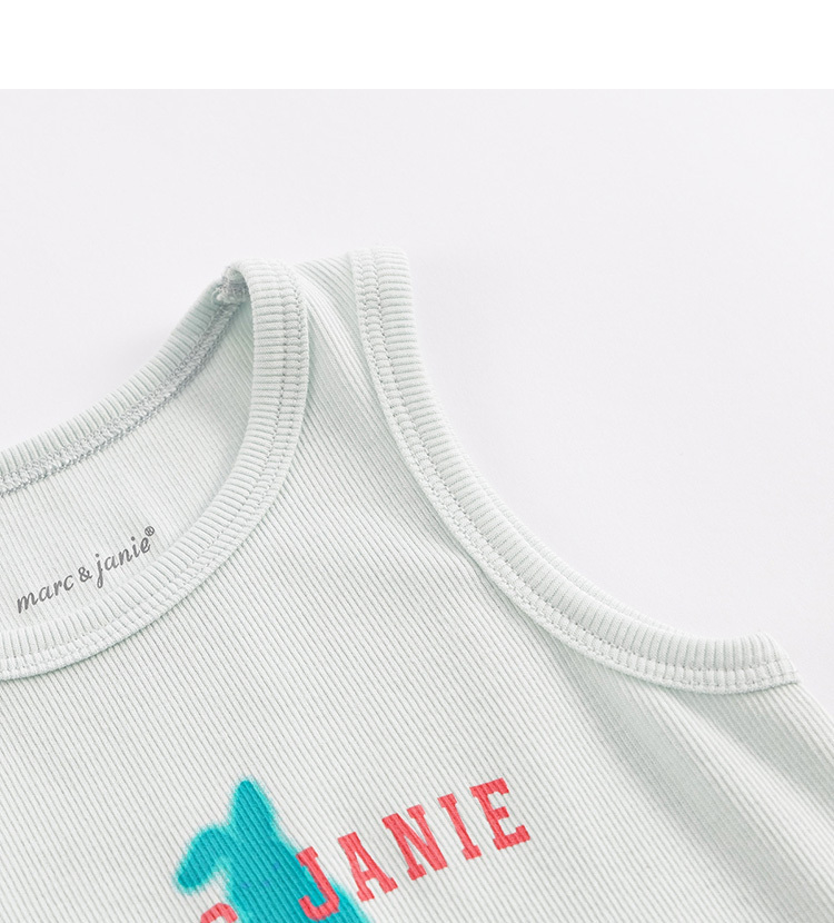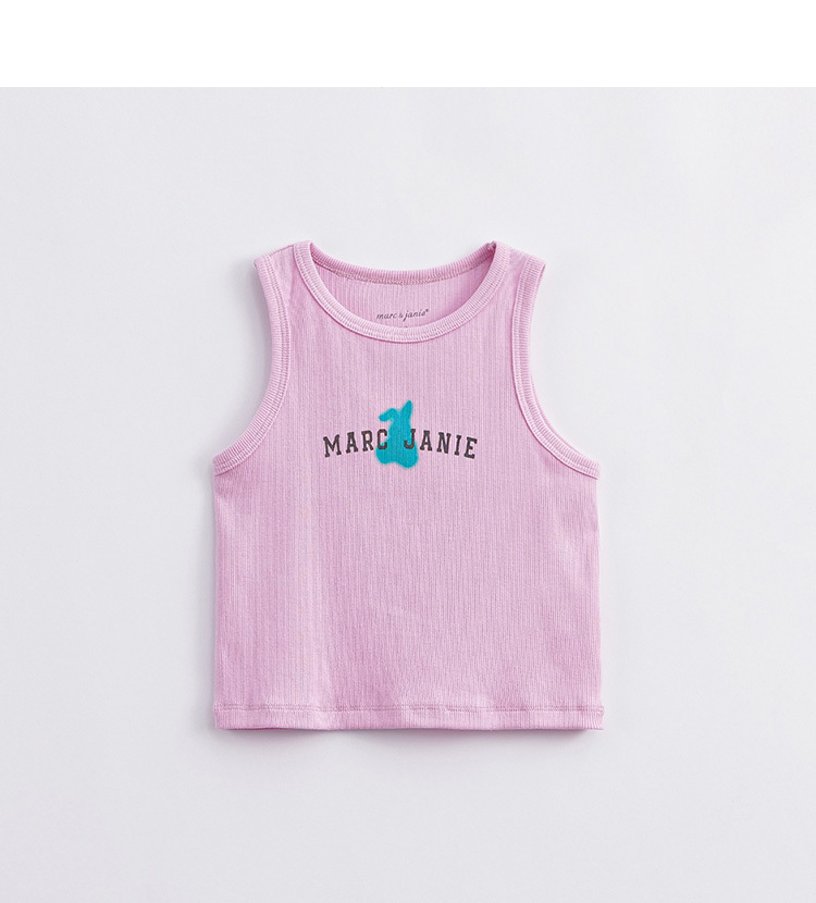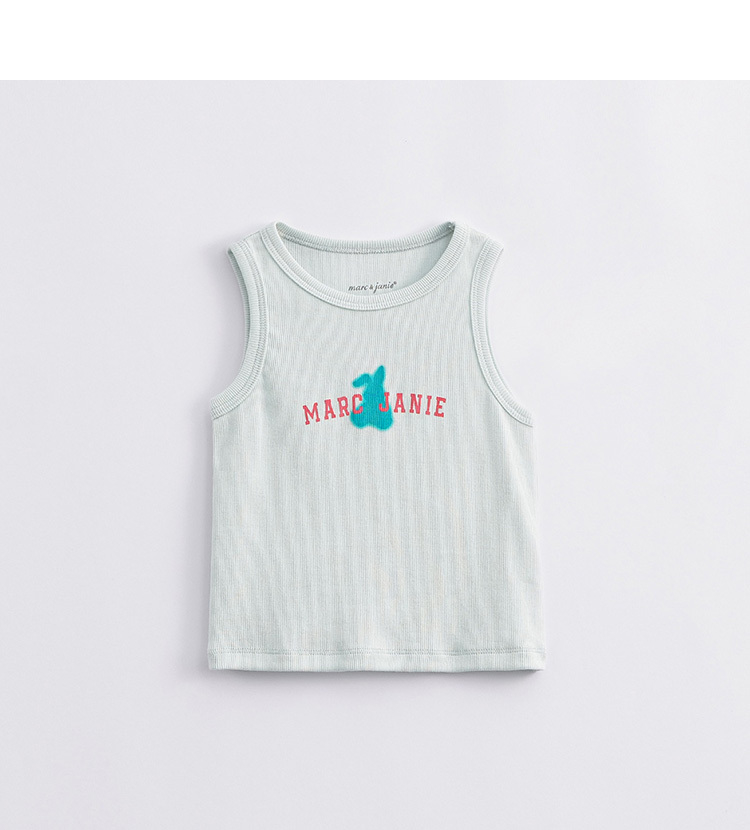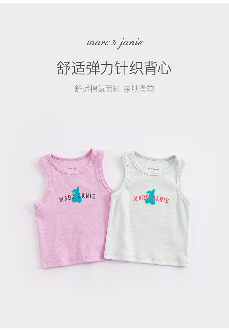 马克珍妮新款夏装女童字母卡通图案弹力背心 儿童上衣230678