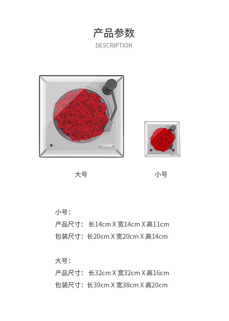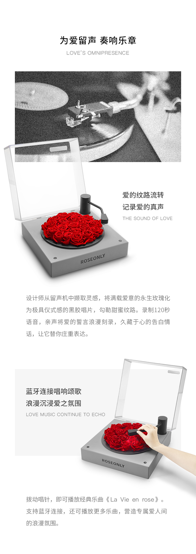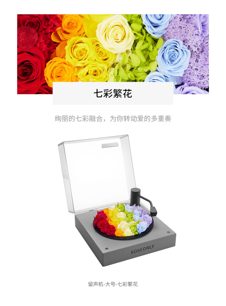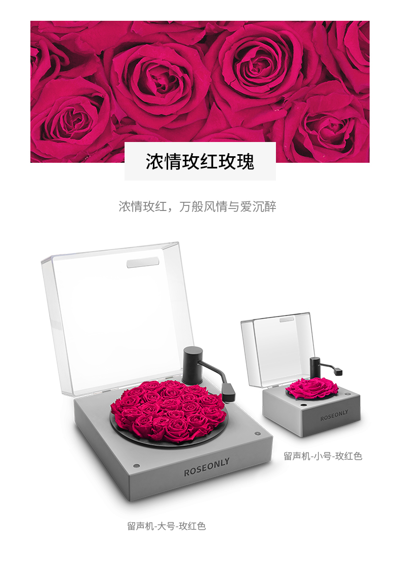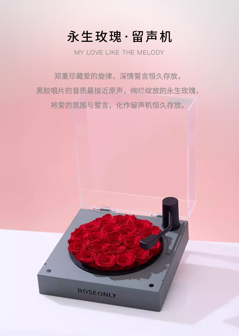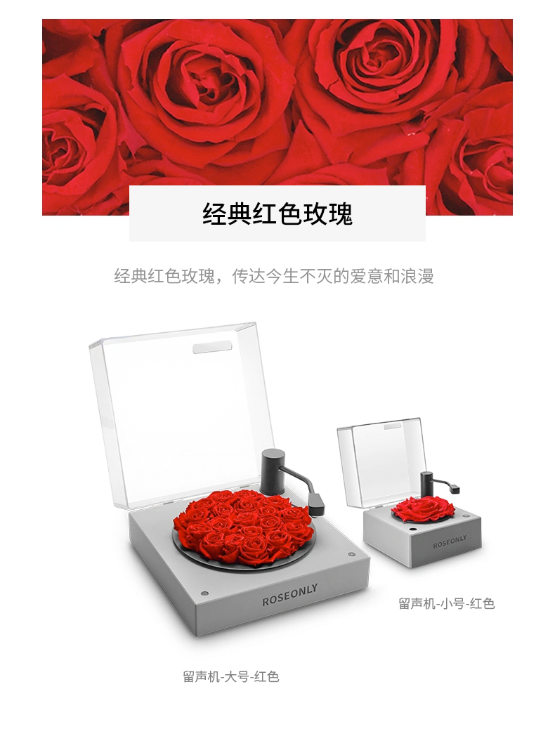 【留声机】ROSEONLY诺誓 永生玫瑰花礼盒 音乐留声机 小号 大号 红色 粉色 生日情人节 结婚 送爱人礼物