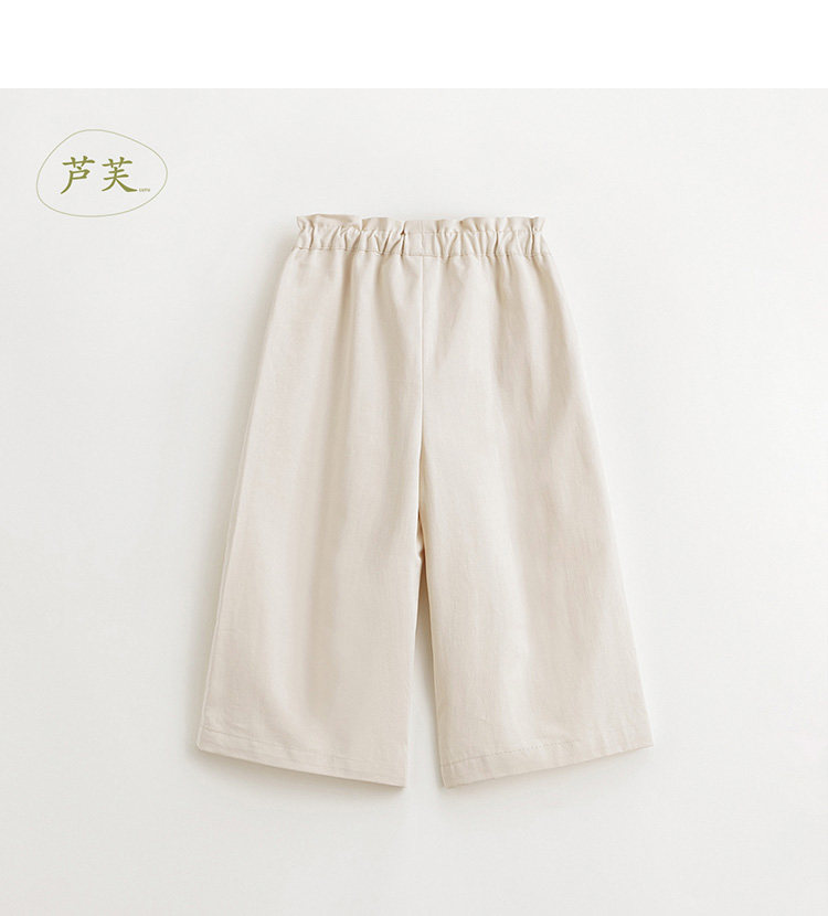 【马克珍妮 芦芙】女童纯棉花边腰休闲阔腿裤儿童春装裤子240303