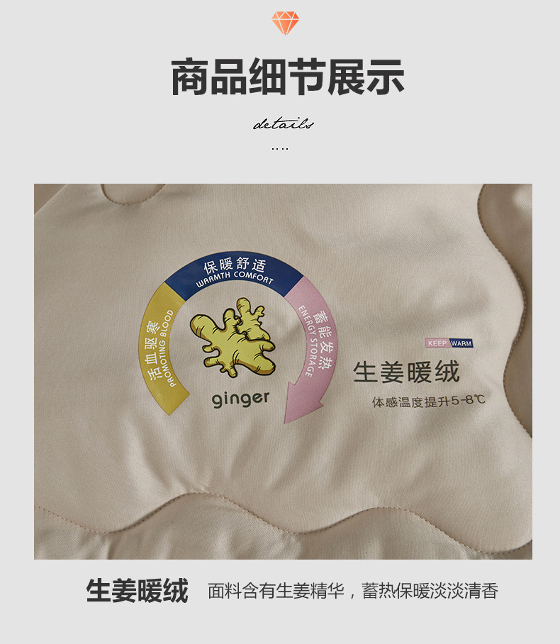 【轻生活】3A云绒纤维秋冬厚款生姜驱寒暖绒被ZP111