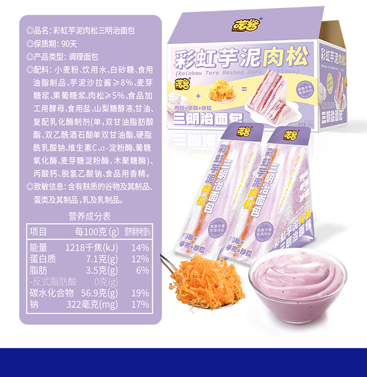 「独立包装!彩虹芋泥三明治」喏酱彩虹芋泥三明治 手工制作爆浆无边吐司早餐休闲下午茶零食