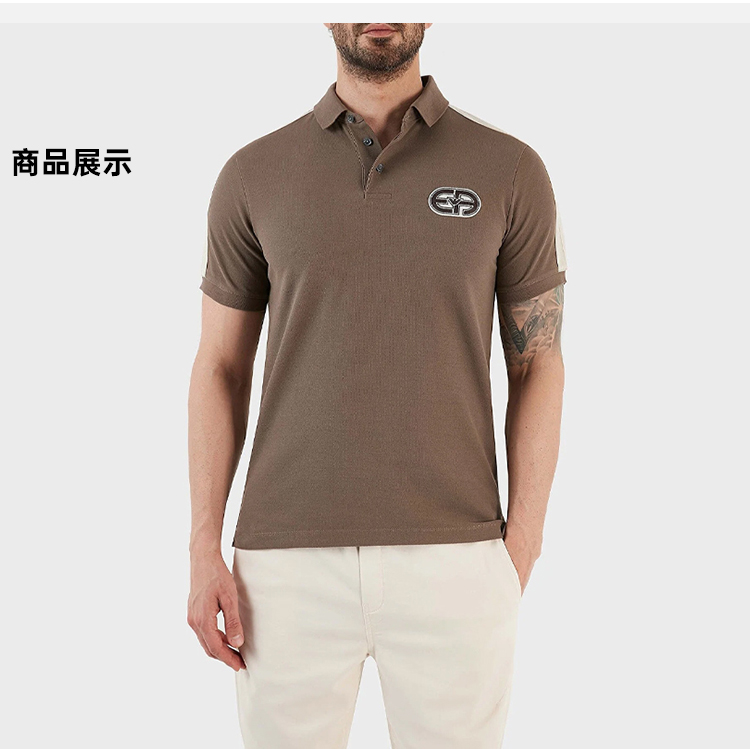EMPORIO ARMANI 阿玛尼 男士棉质徽标贴花短袖polo衫 深棕色 3R1F77 1JCYZ 0440