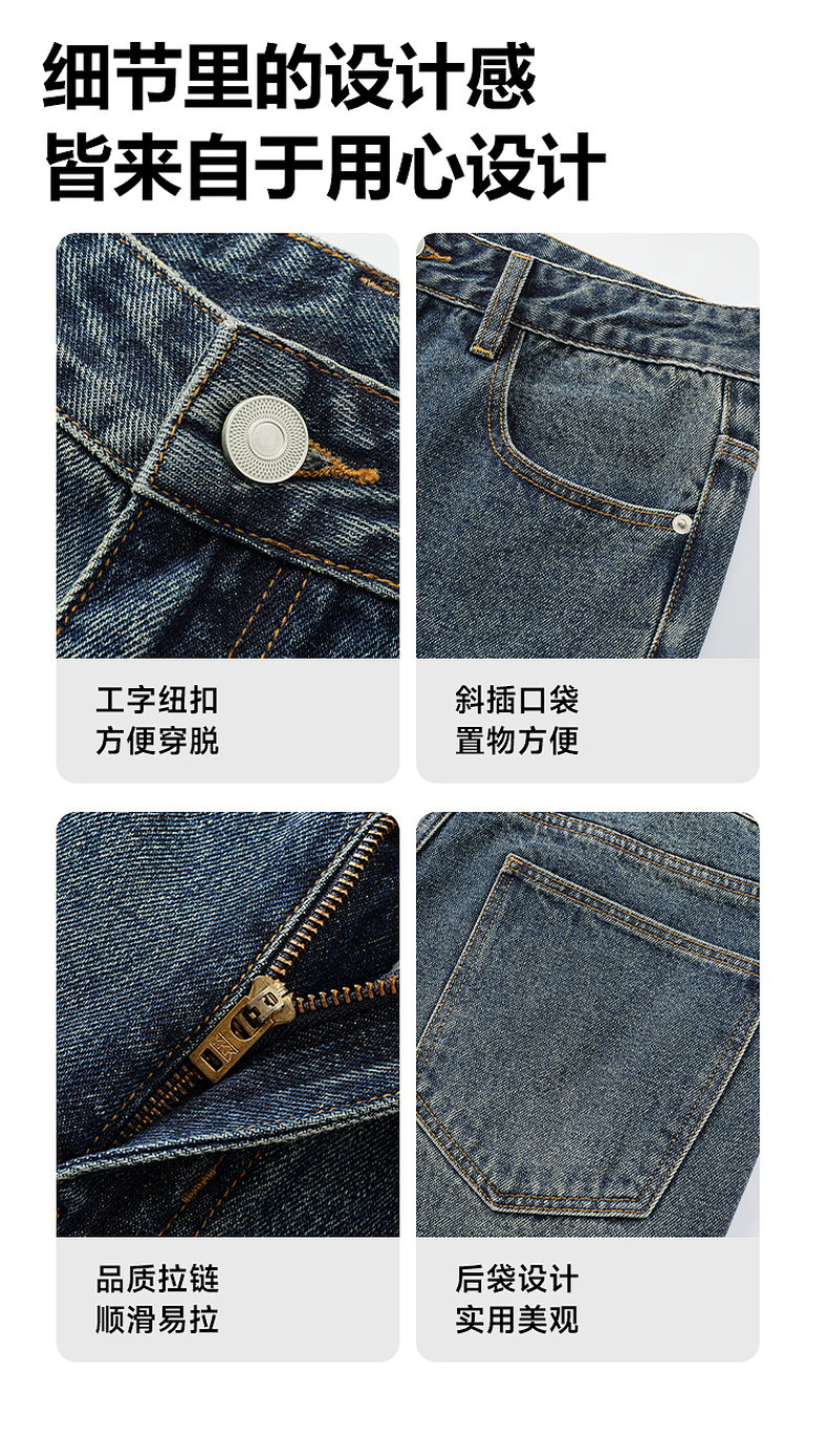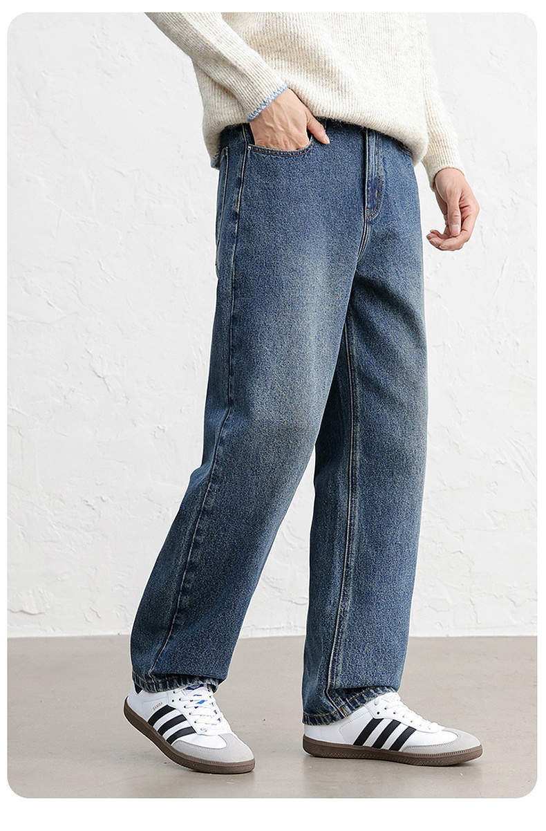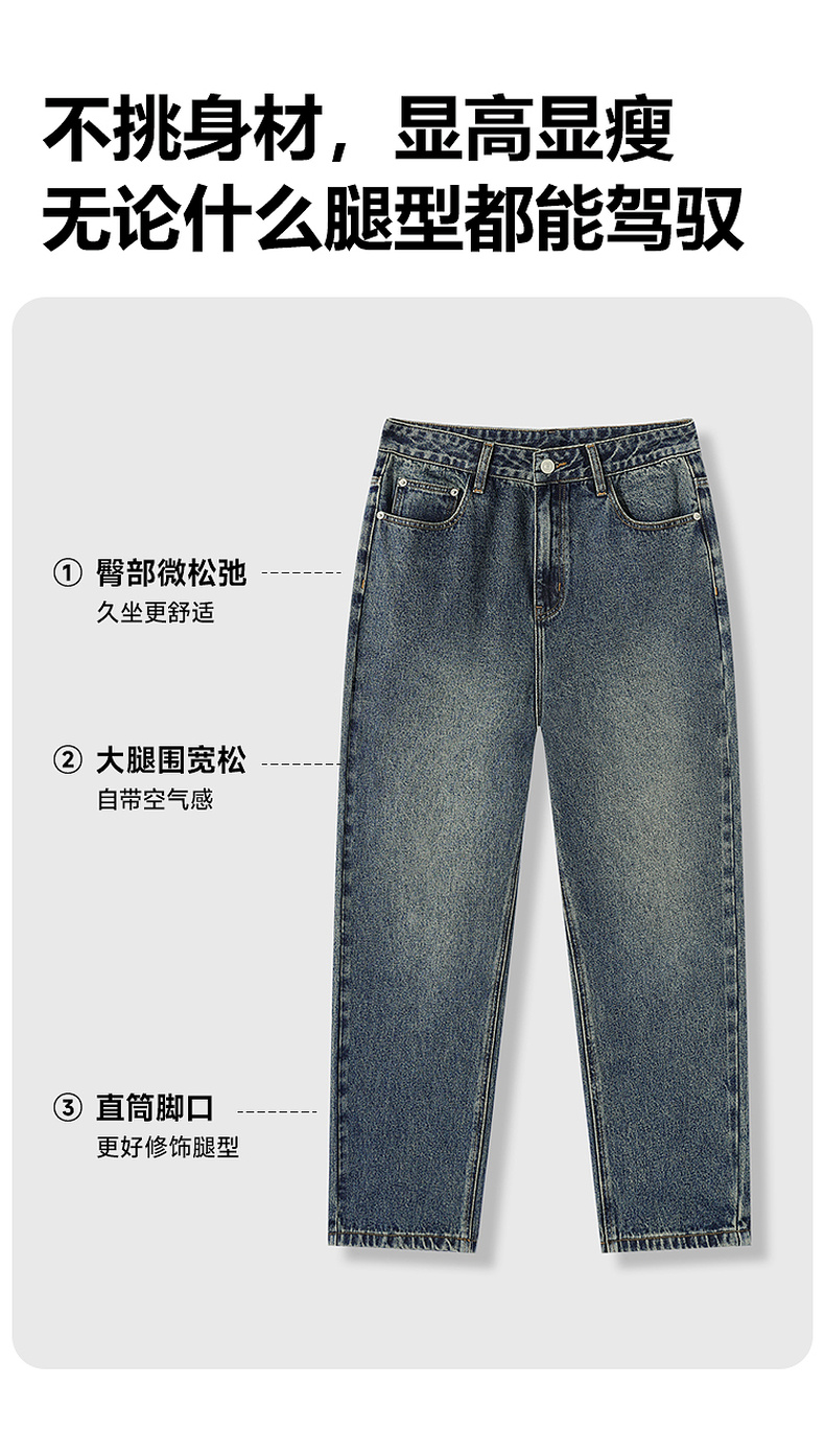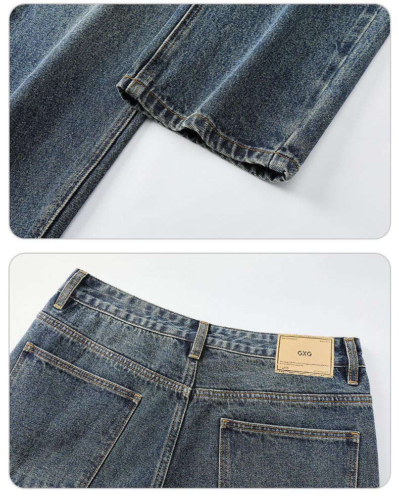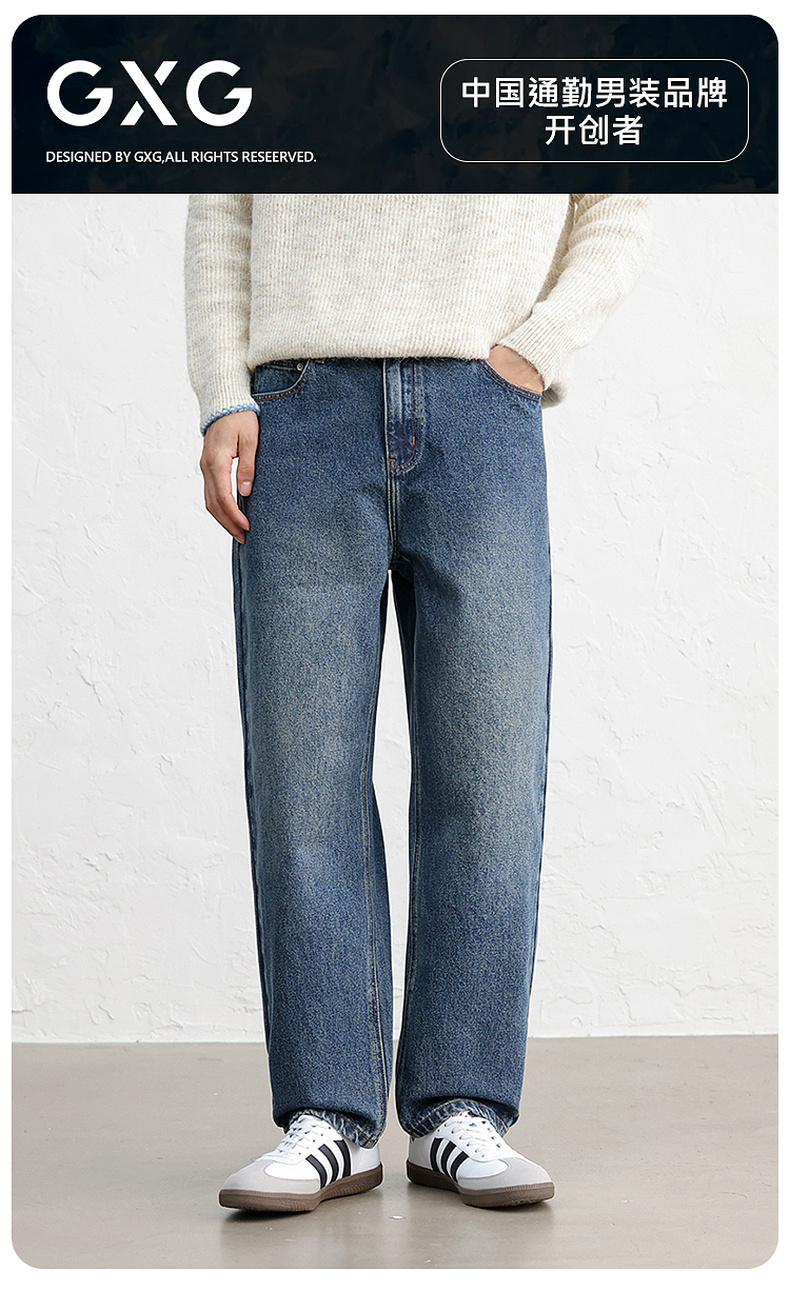 GXG男装25秋季简约复古舒适有型日常通勤直筒休闲男式牛仔长裤子K&C