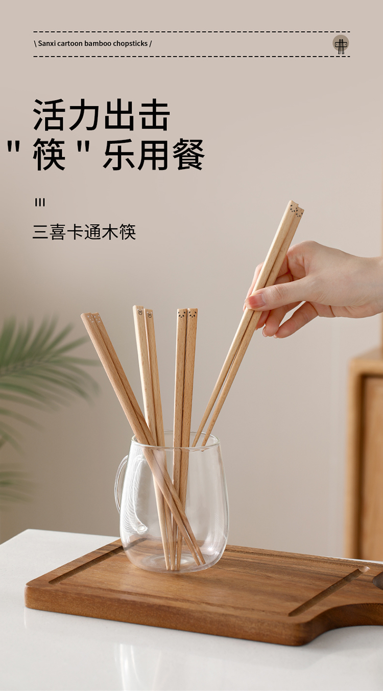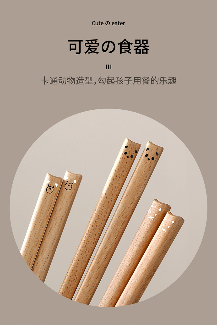 FaSoLa儿童筷子家用高档新款木质一人一筷日式可爱分餐木筷