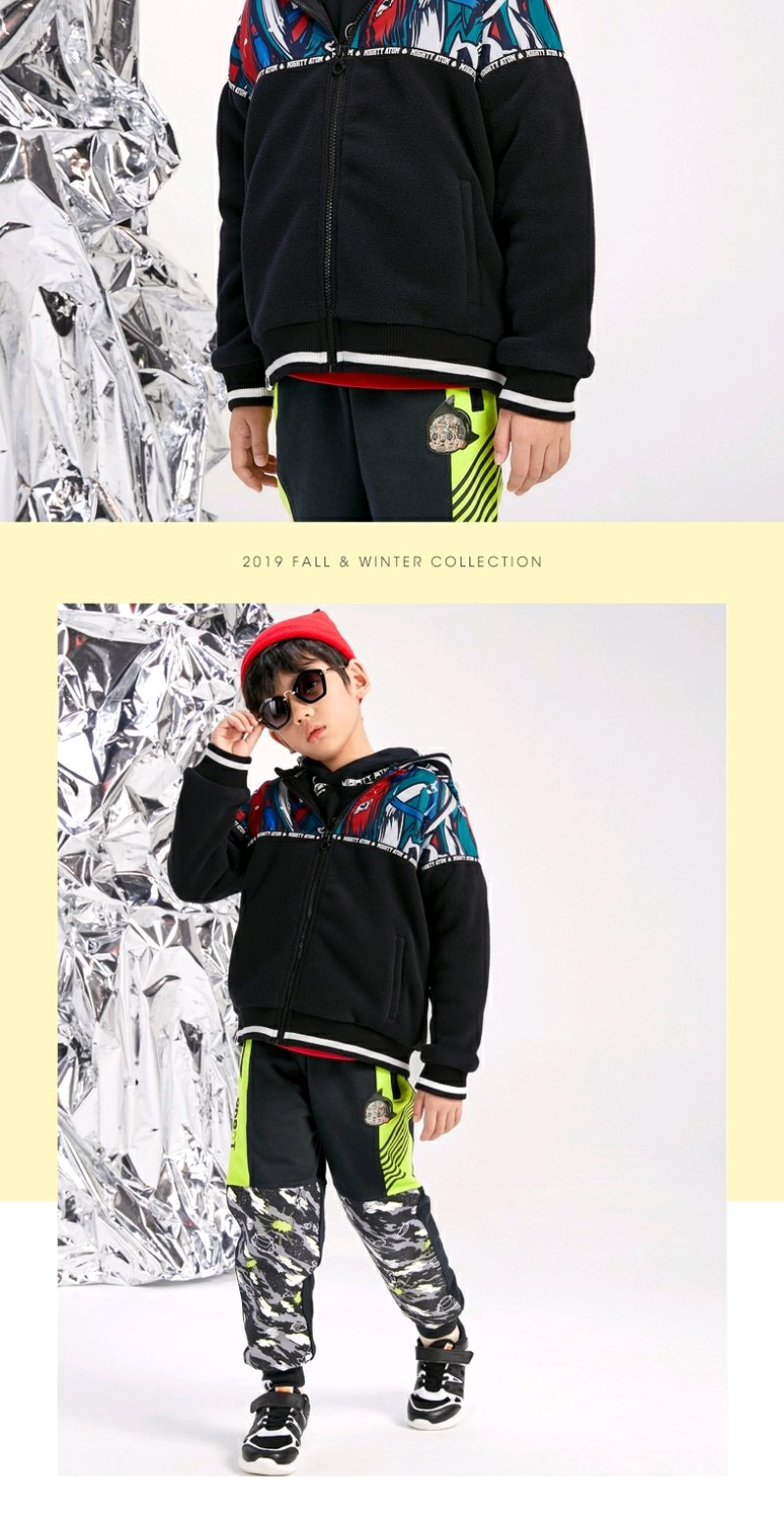 阿童木童装拼幅迷彩开胸有帽卫衣