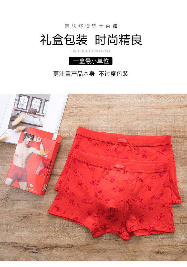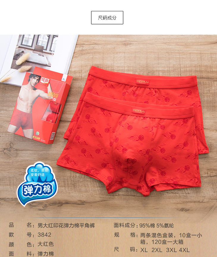 男士大红印花长绒棉皮马棉赛代尔莫代尔平角内裤3842/83623/73623/8777/7806/7807/885/887/5528