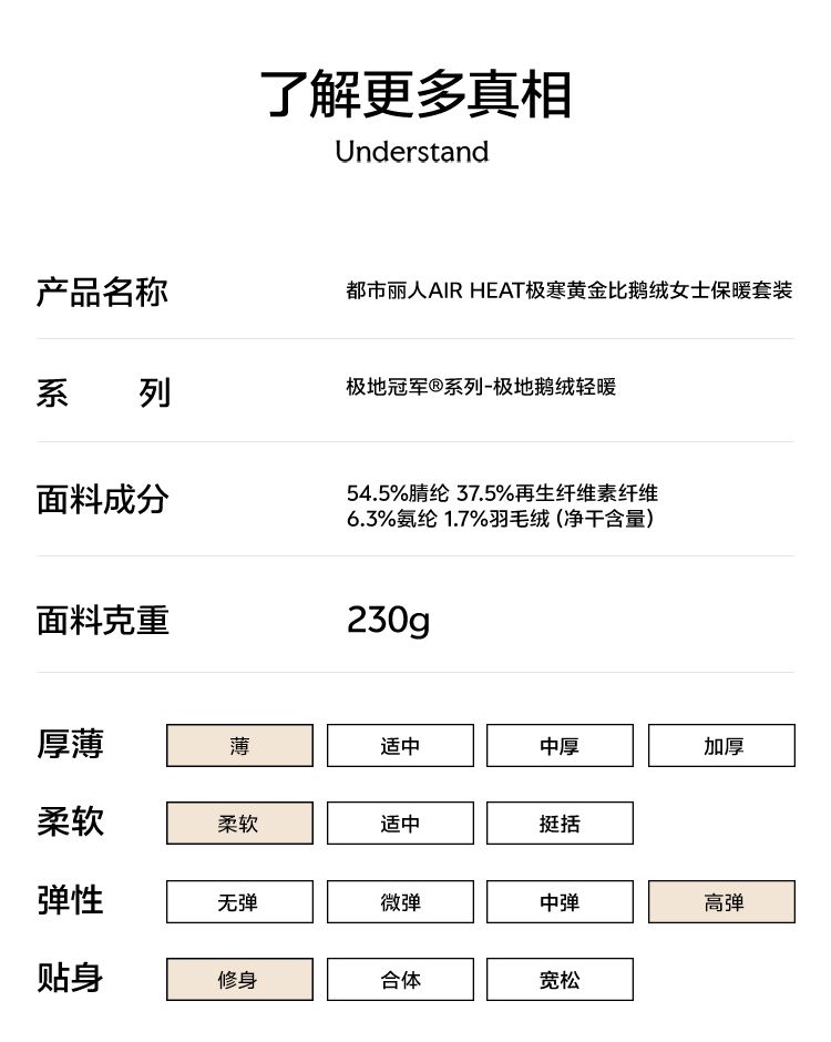 【极地冠军系列】都市丽人女士保暖衣套装加拿大鹅绒保暖LWH1F3