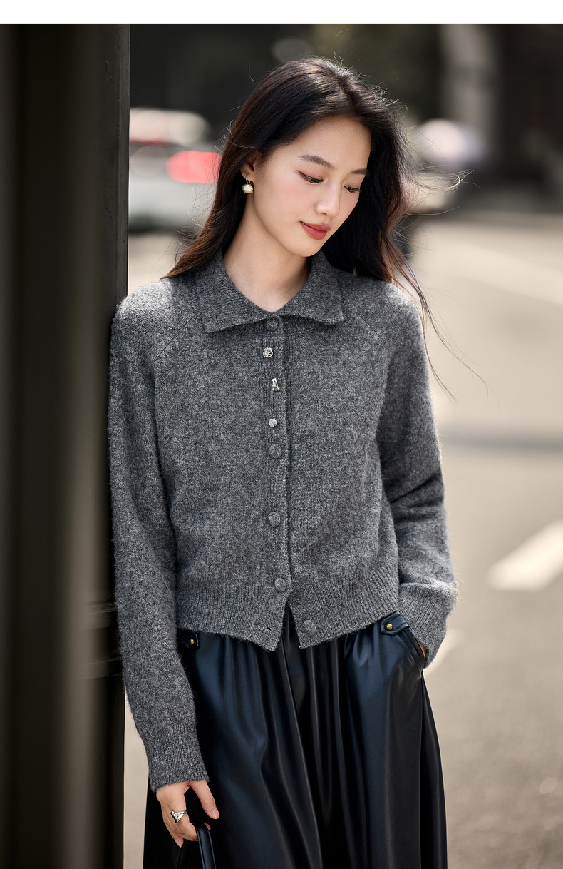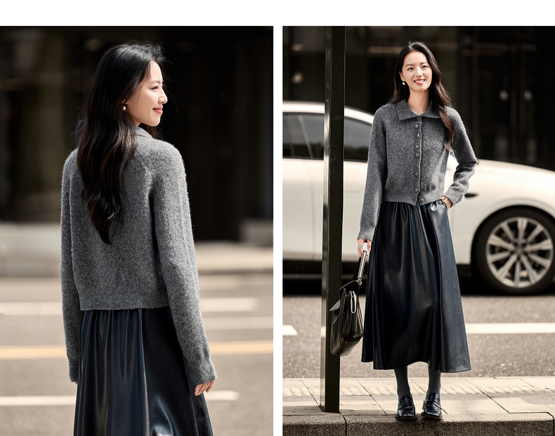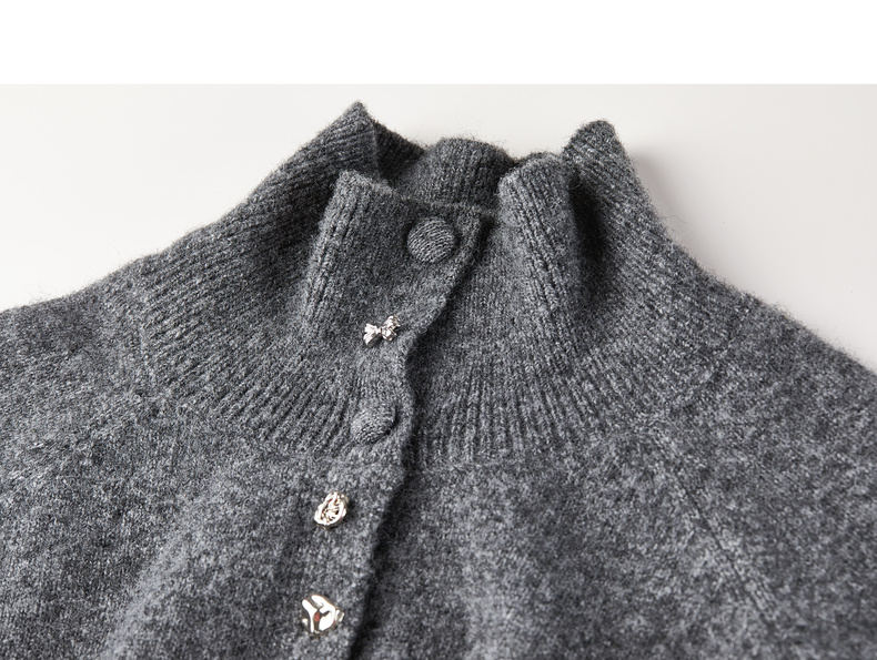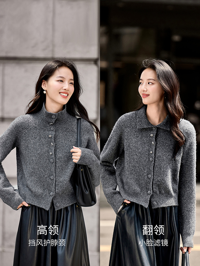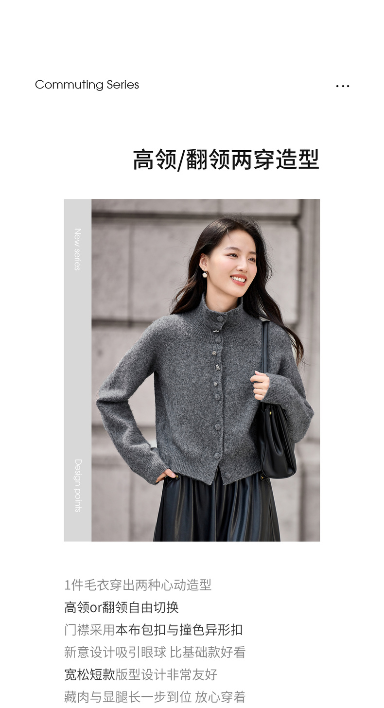 【内购】【两穿领】含绵羊毛简约休闲高领/翻领撞色扣宽松显瘦短款毛衣-W54EI3846
