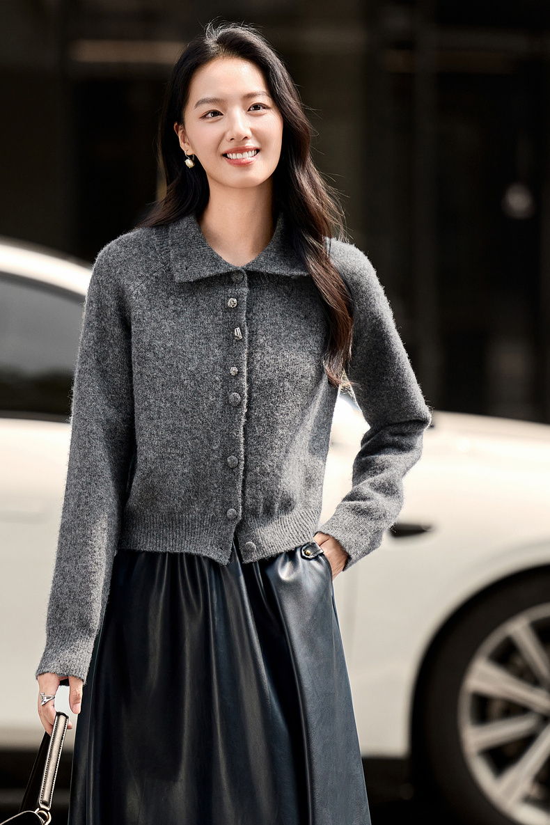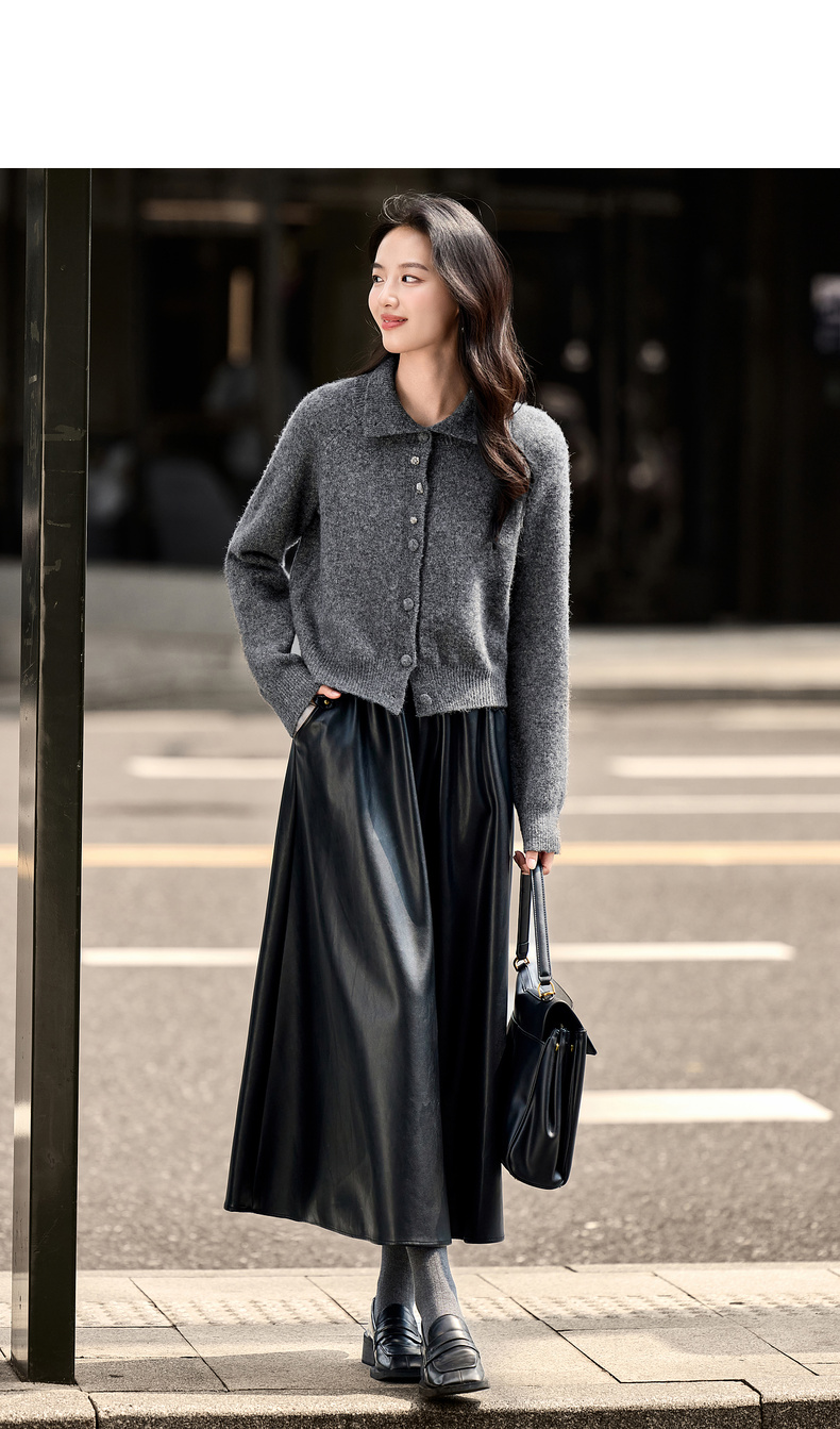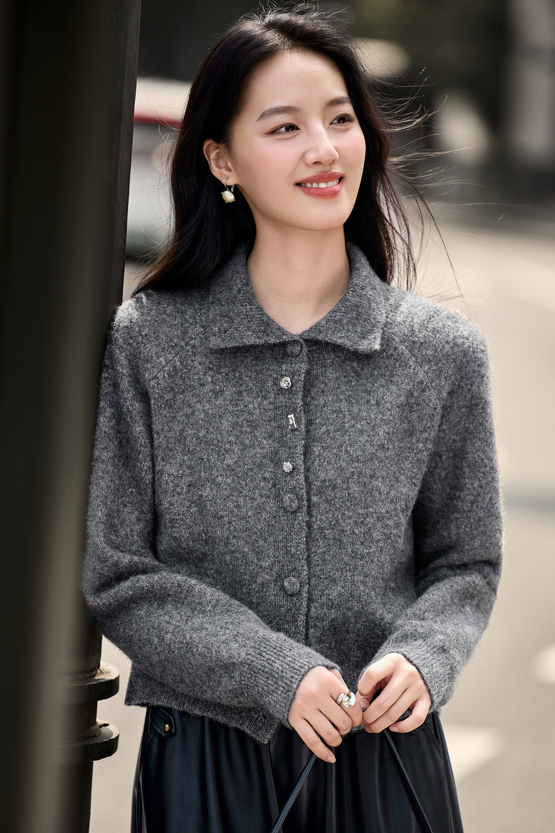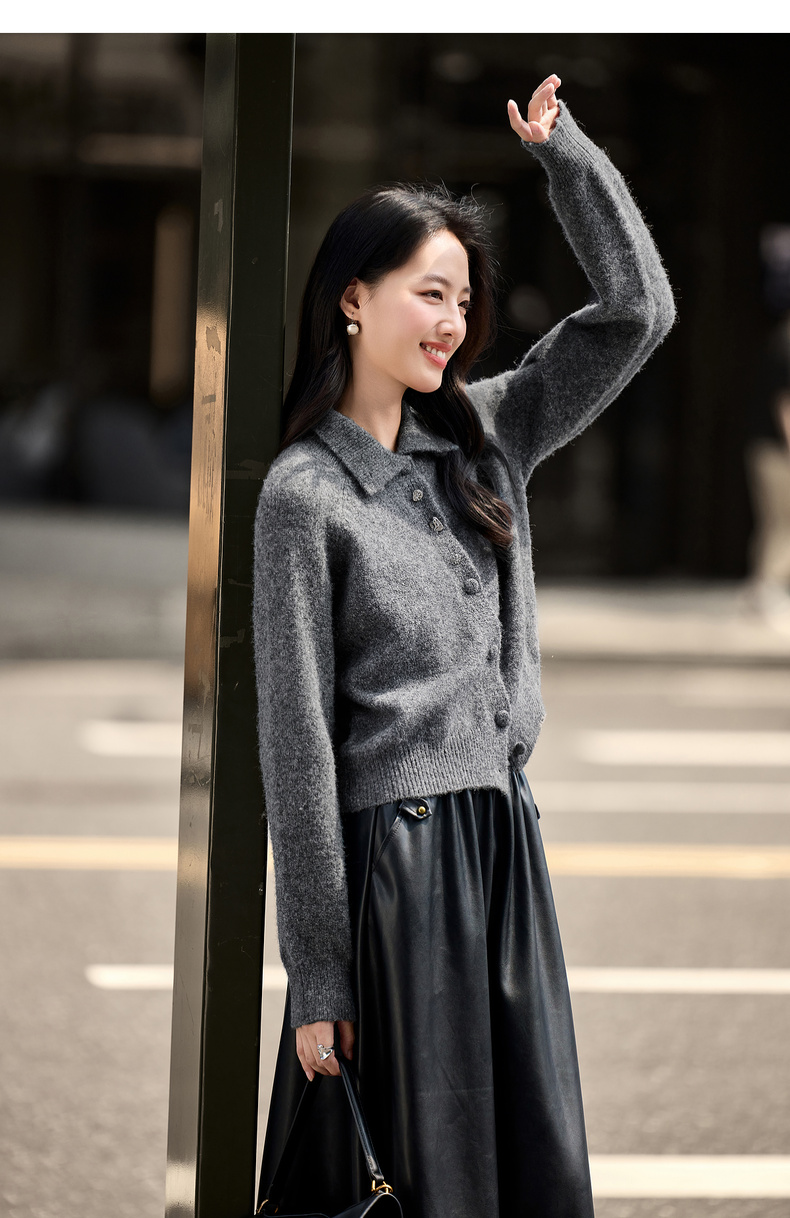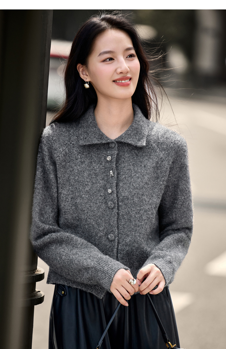 【内购】【两穿领】含绵羊毛简约休闲高领/翻领撞色扣宽松显瘦短款毛衣-W54EI3846