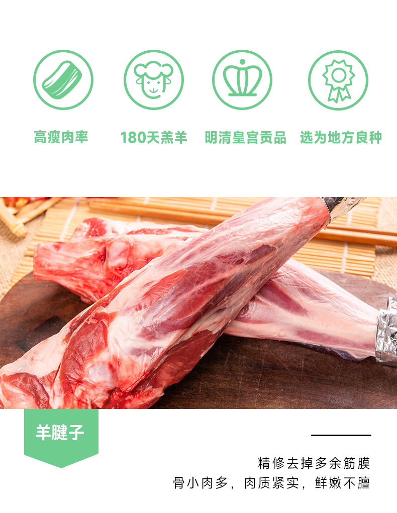 【鲜嫩不膻清水煮就很香】牧北鲜锡盟草原散养苏尼特羔羊肉有机羔羊腱子1kg*2袋送炖料2包