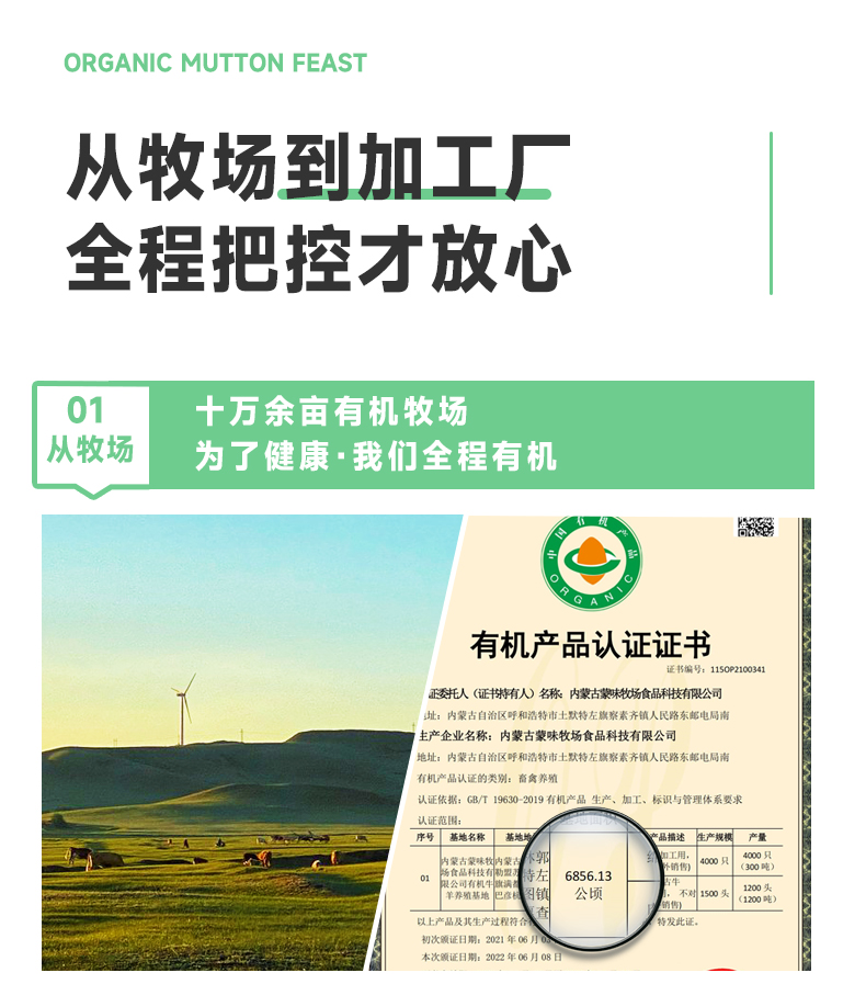 - “牧北鲜”是蒙味牧场公司旗下专注于有机牧场养殖,有机农产品种植、有机牛羊肉深加工的品牌。公司秉承“尊重自然,倡导有机生活”的经营理念, 从源头严控有机牛羊肉品质,推动绿色消费升级,让品质生活触手可及