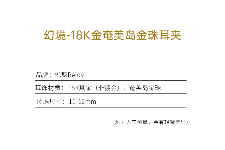 【挚友限定】悦甄 18K金南洋金珠耳夹 幻境