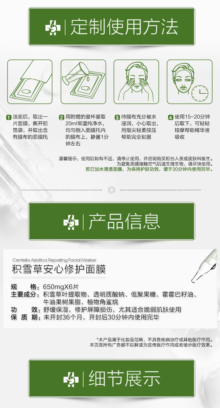 【若初】玉泽积雪草冻干面膜6片 玻尿酸保湿