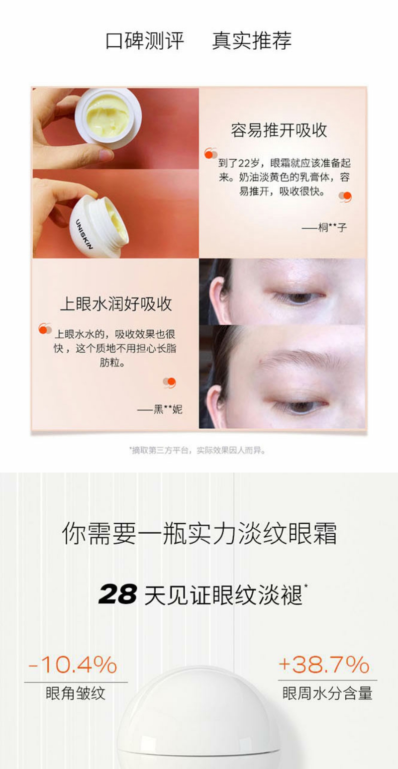 【预售 急单慎拍】优时颜uniskin微笑眼霜18g淡化细纹眼纹黑眼圈眼袋 微笑电眼冻龄塑颜