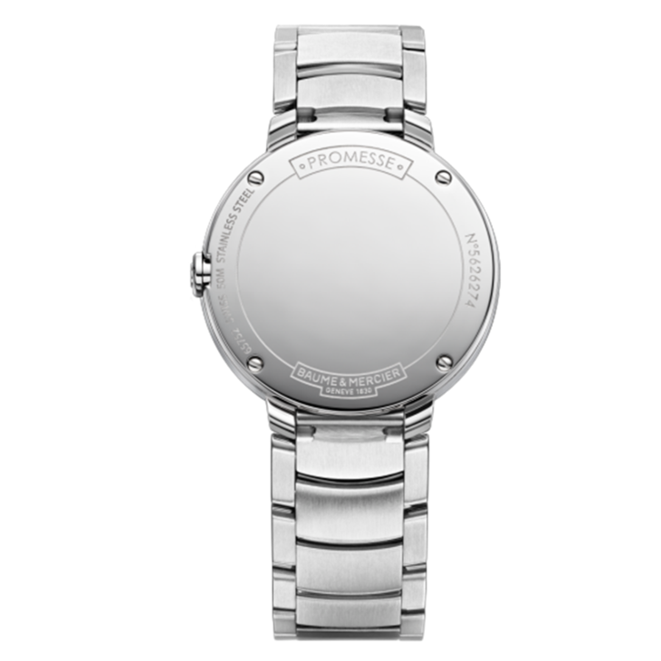 镜面材质 | 蓝宝石水晶玻璃 | 表盘 | 精钢抛光表壳 珍珠母贝色表盘 太子妃式指针 罗马数字数字 镶嵌钻石(0.03克拉)时标 |