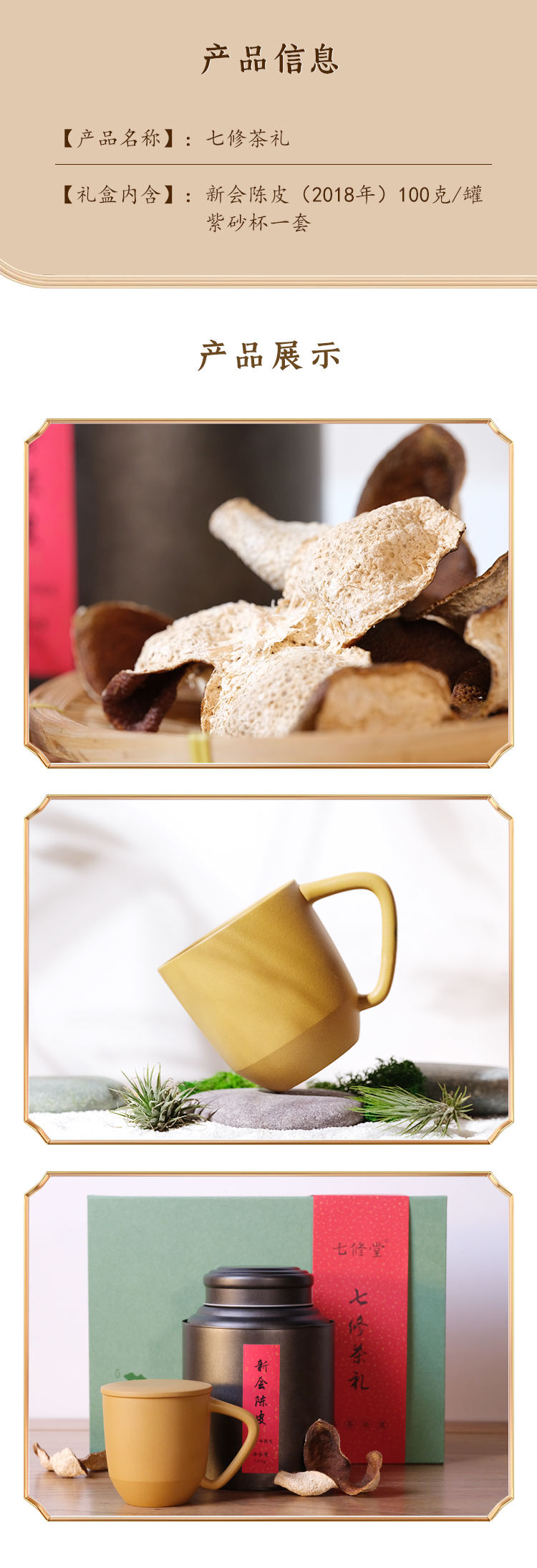 七修茶礼·新会陈皮套装 紫砂杯礼盒套装 陈皮100g