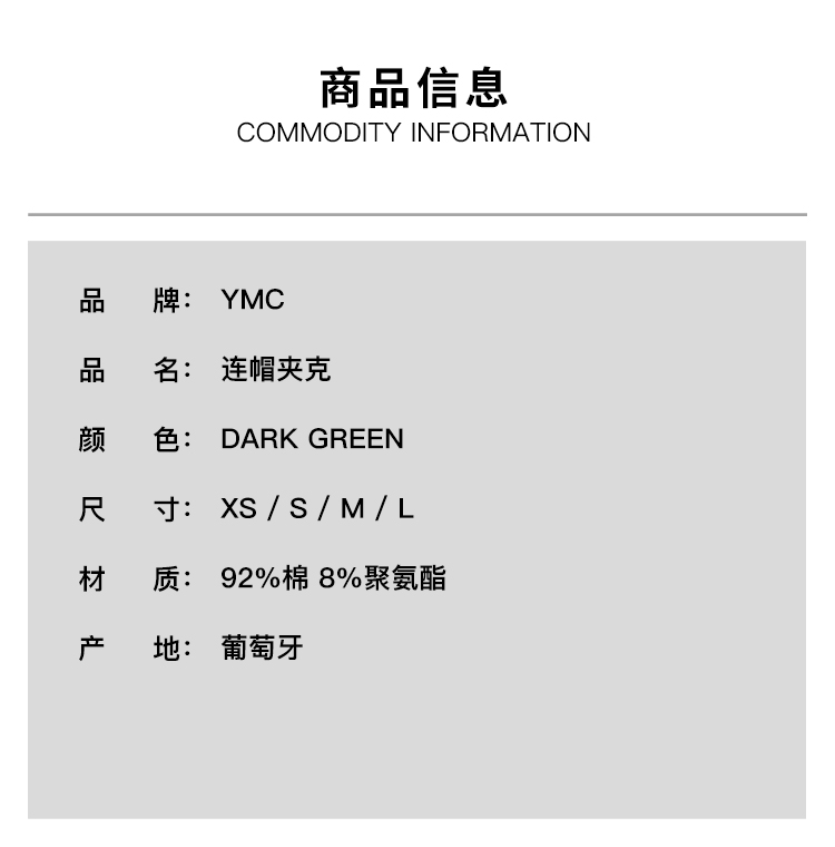 YMC BONEHEAD JACKET 男女装意大利面料宽松廓形连帽夹克外套