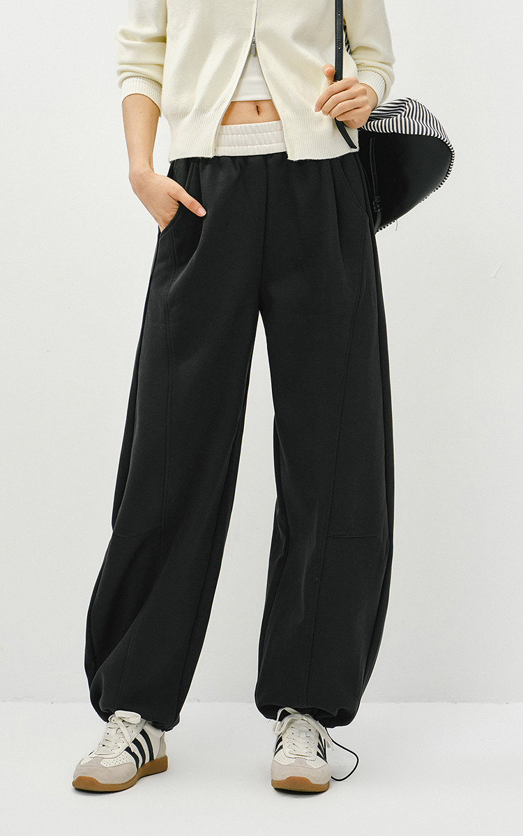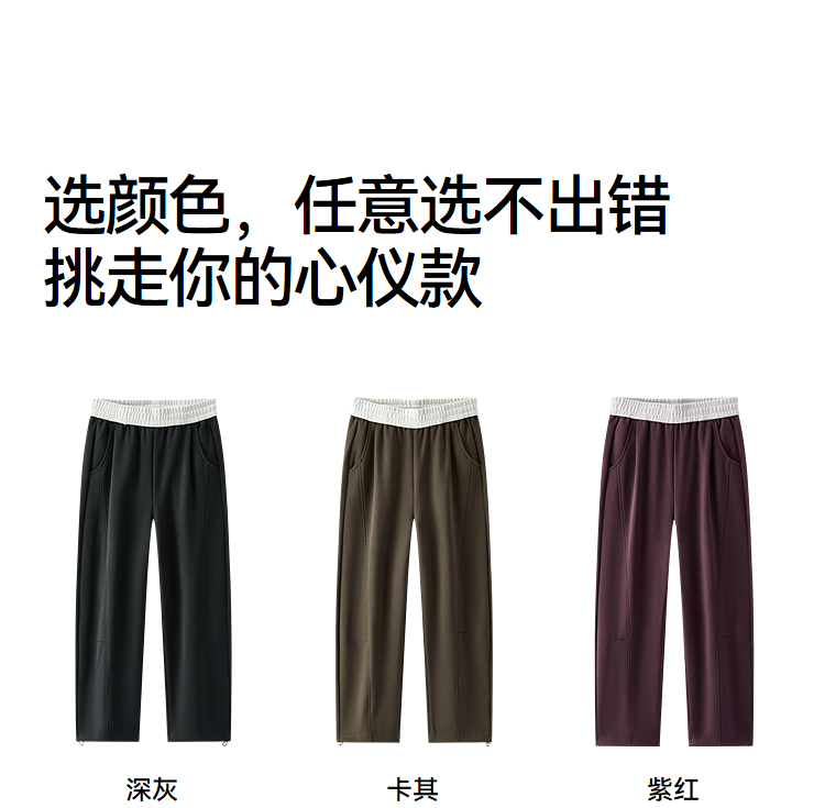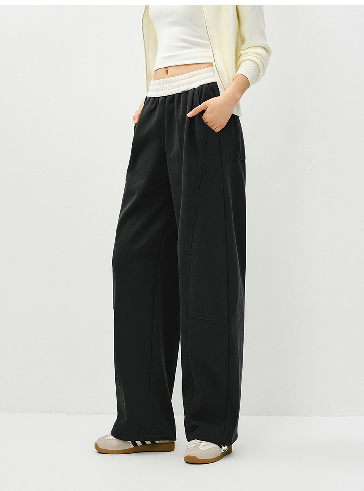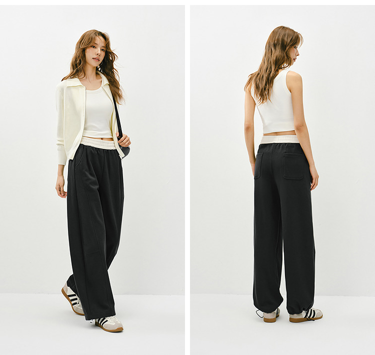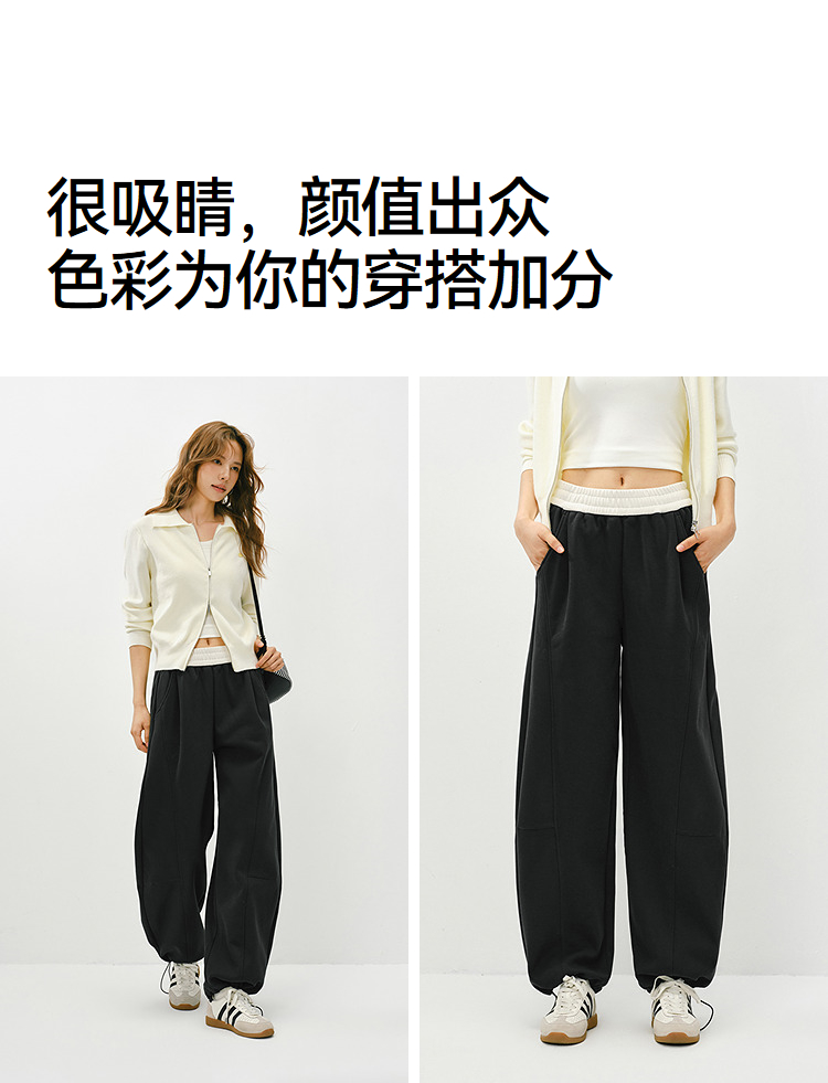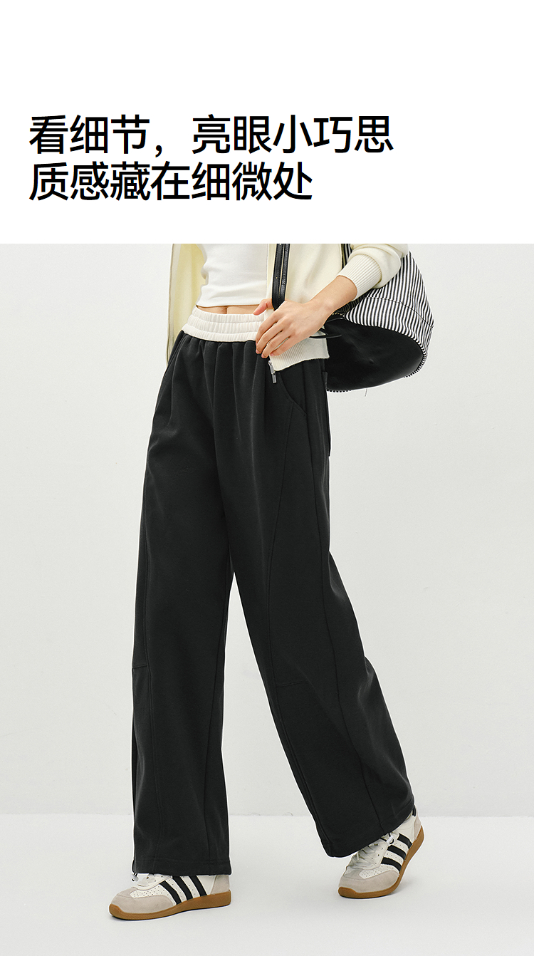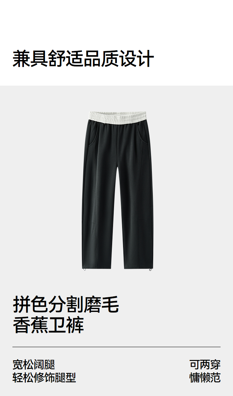 森马休闲裤女春季磨毛阔腿香蕉裤拼色宽松分割显瘦潮流慵懒风卫裤