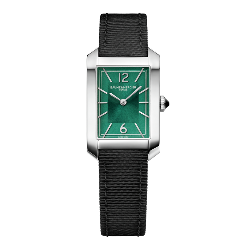 镜面材质 | 蓝宝石水晶玻璃 | 表盘 | 精钢表壳 乳光与太阳缎面打磨的绿色表盘; 镀铑阿拉伯数字与表刻;镀铑剑形指针;银粉色分钟刻度 |