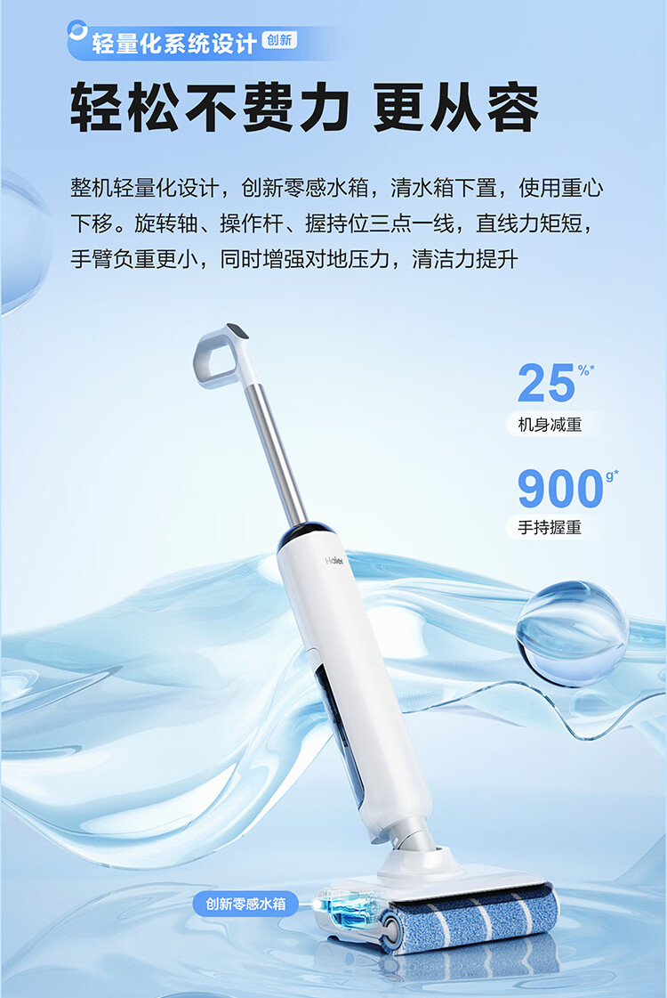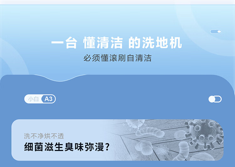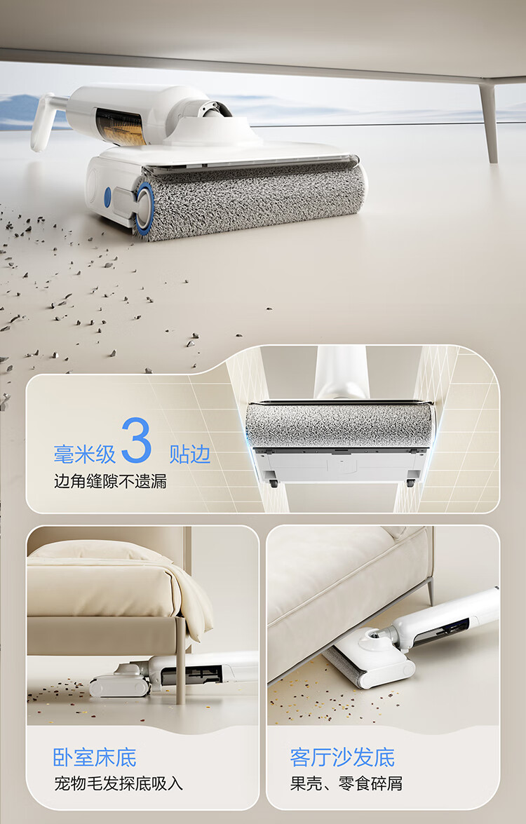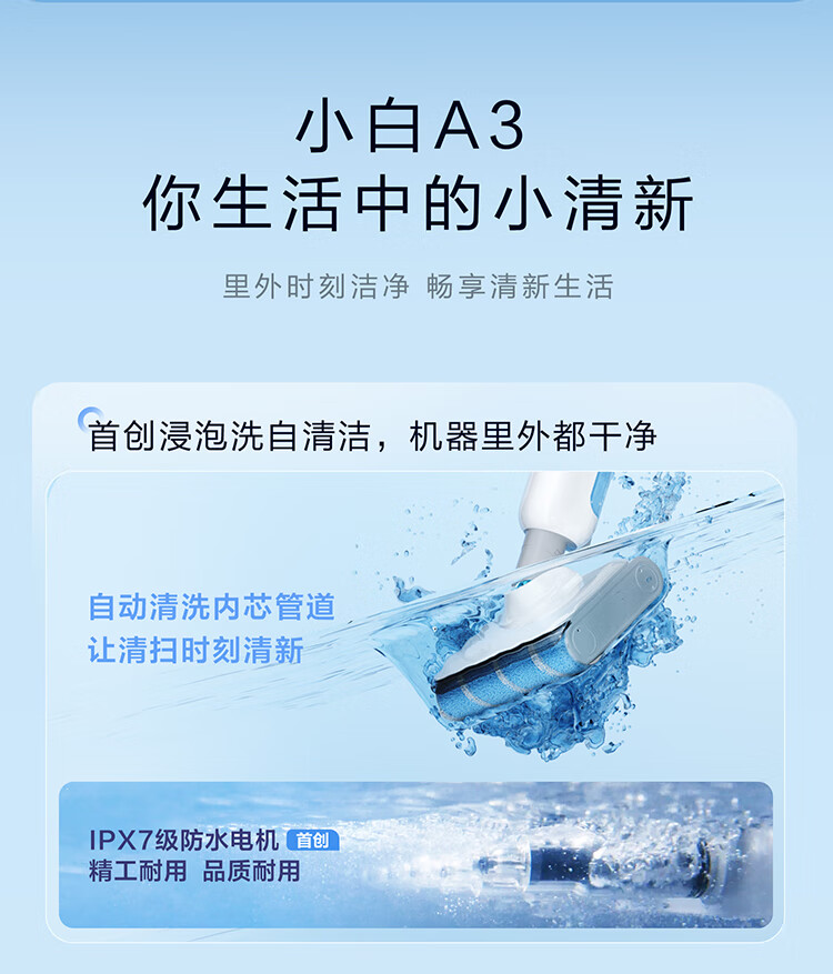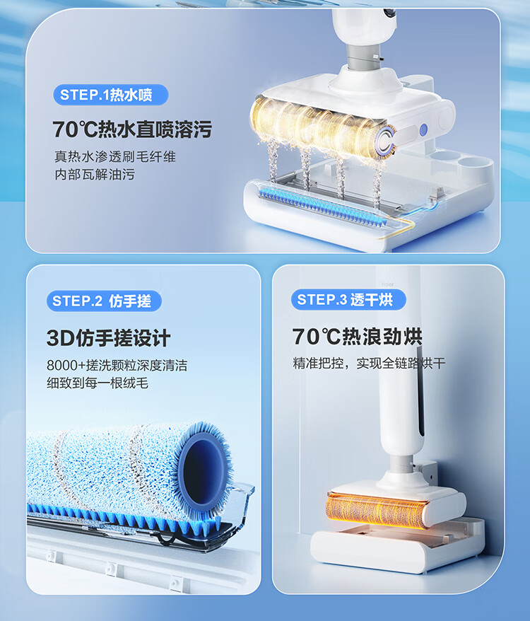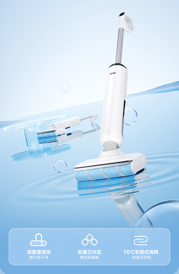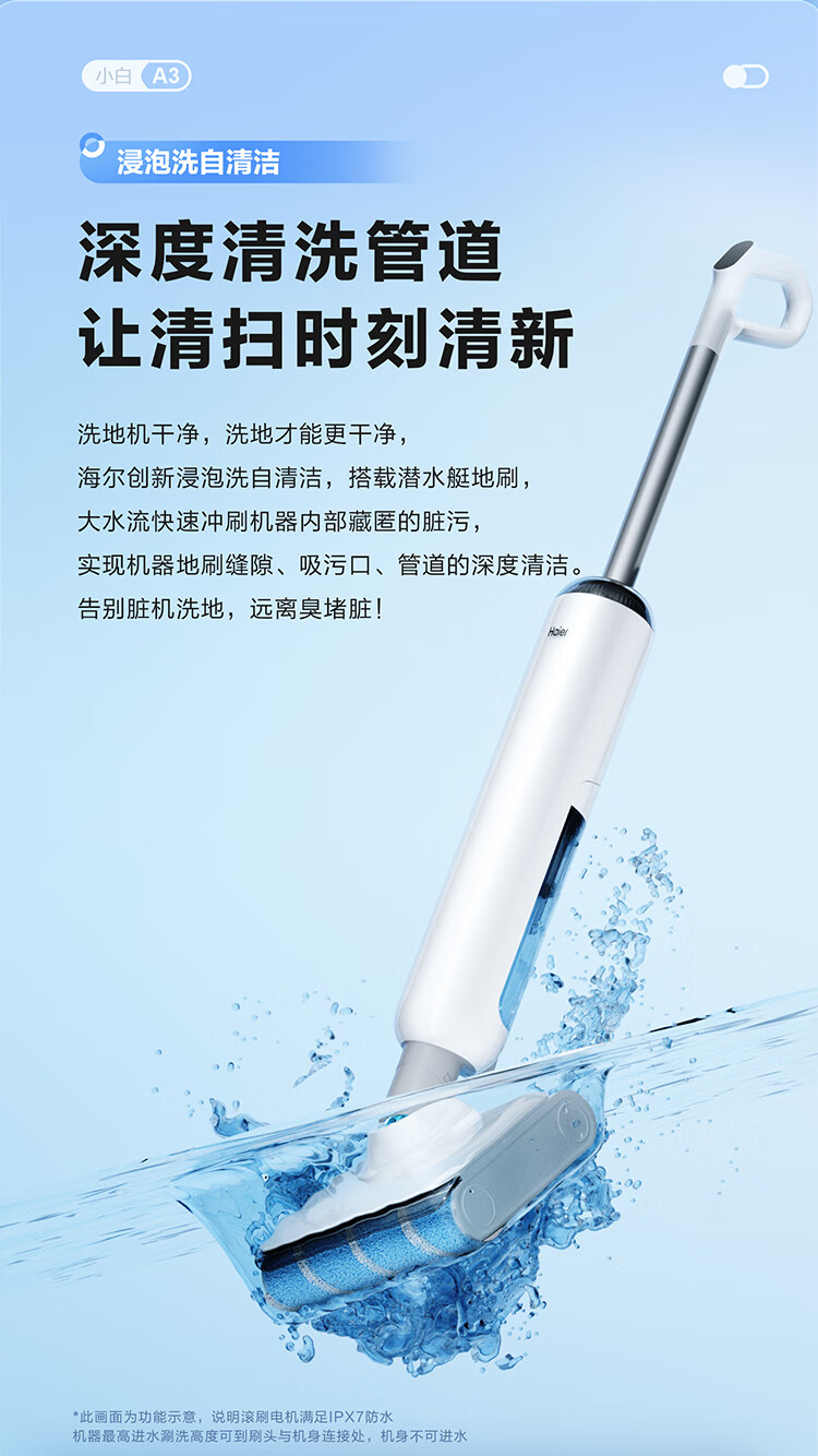 海尔(Haier)洗地机小白A3【山茶花系列】吸拖一体自动清洗扫地拖地机洗拖 180°平躺防缠绕 高温速烘热水自清洁