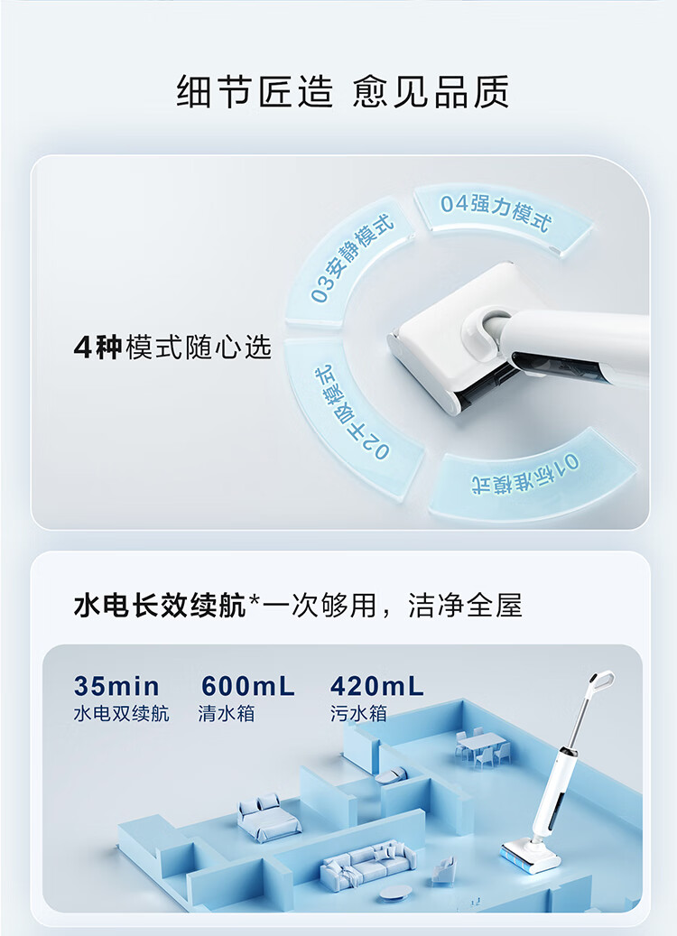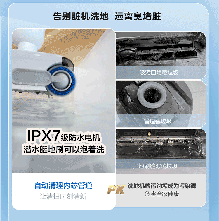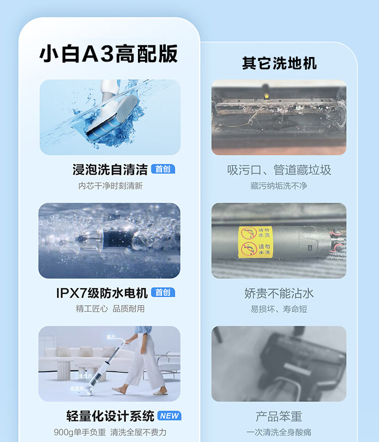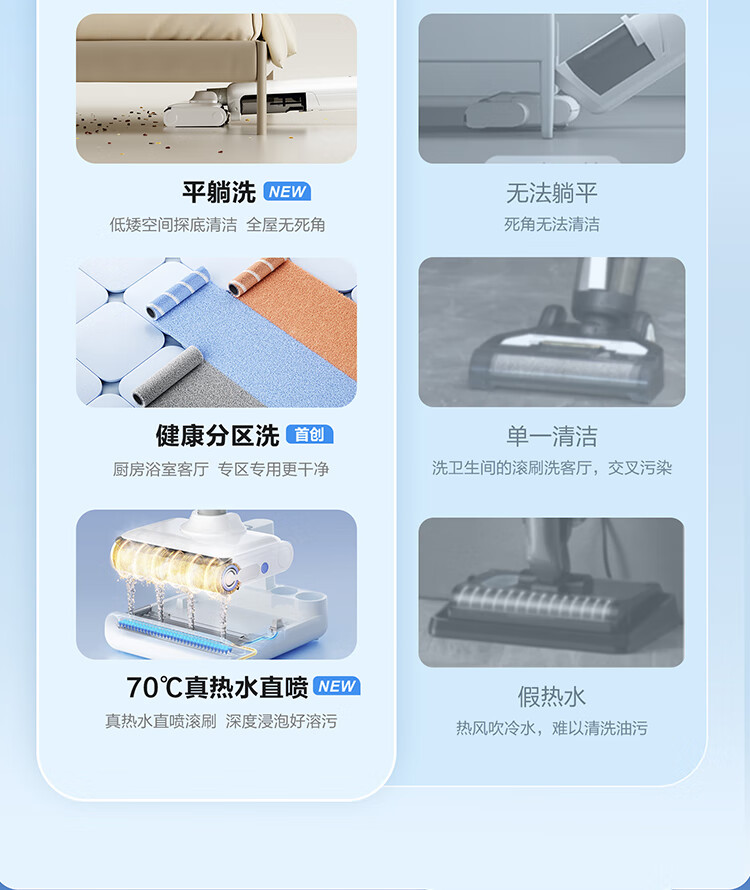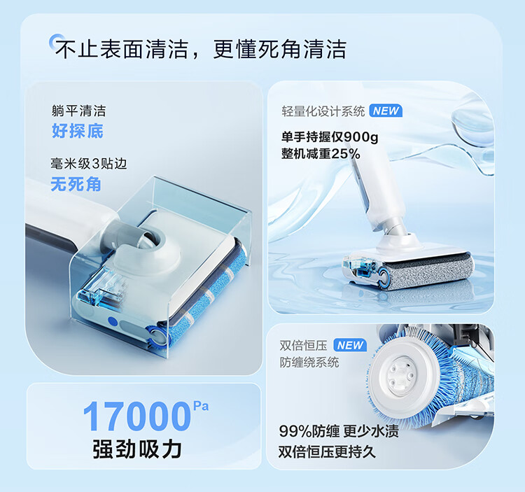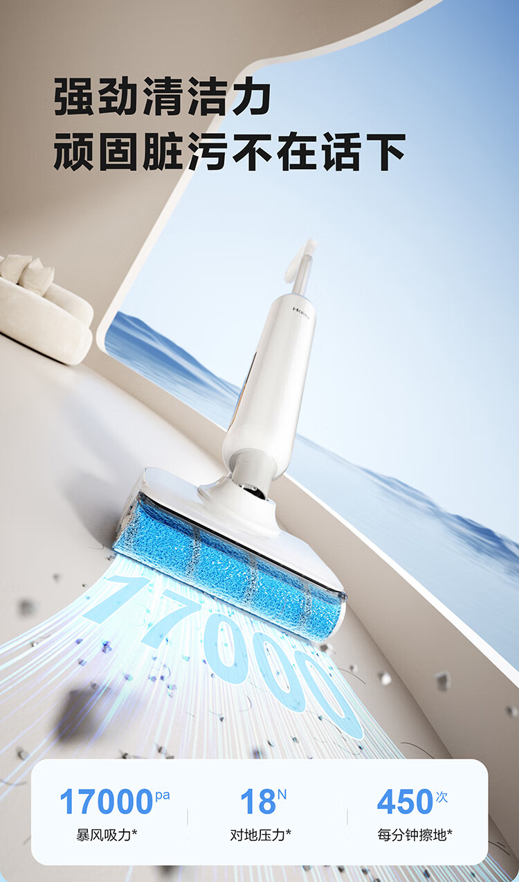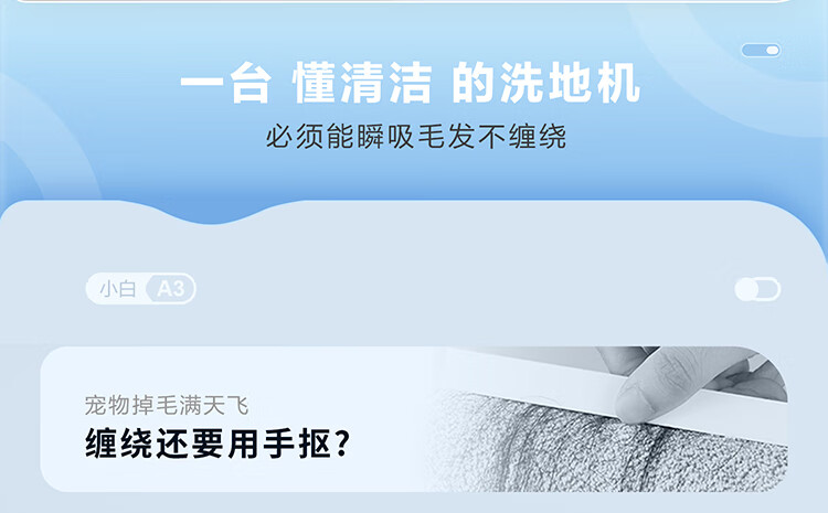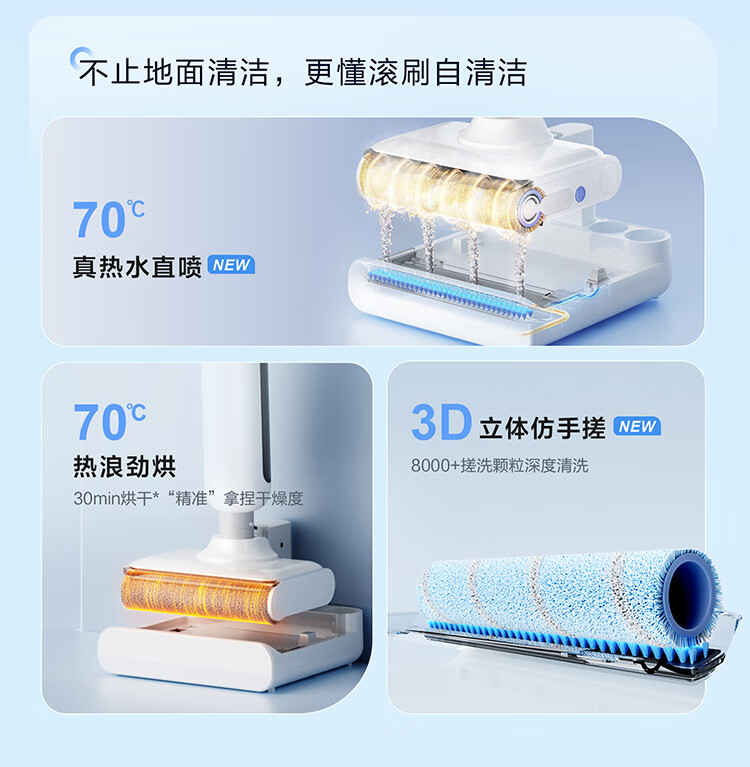 海尔(Haier)洗地机小白A3【山茶花系列】吸拖一体自动清洗扫地拖地机洗拖 180°平躺防缠绕 高温速烘热水自清洁