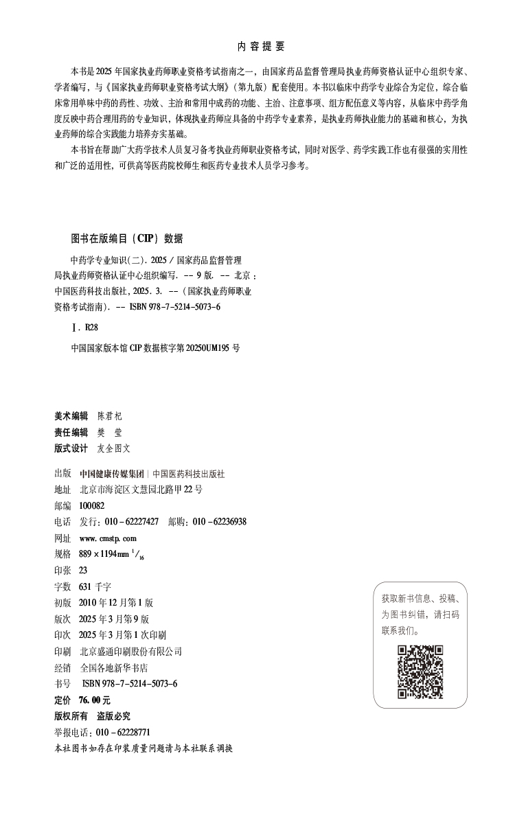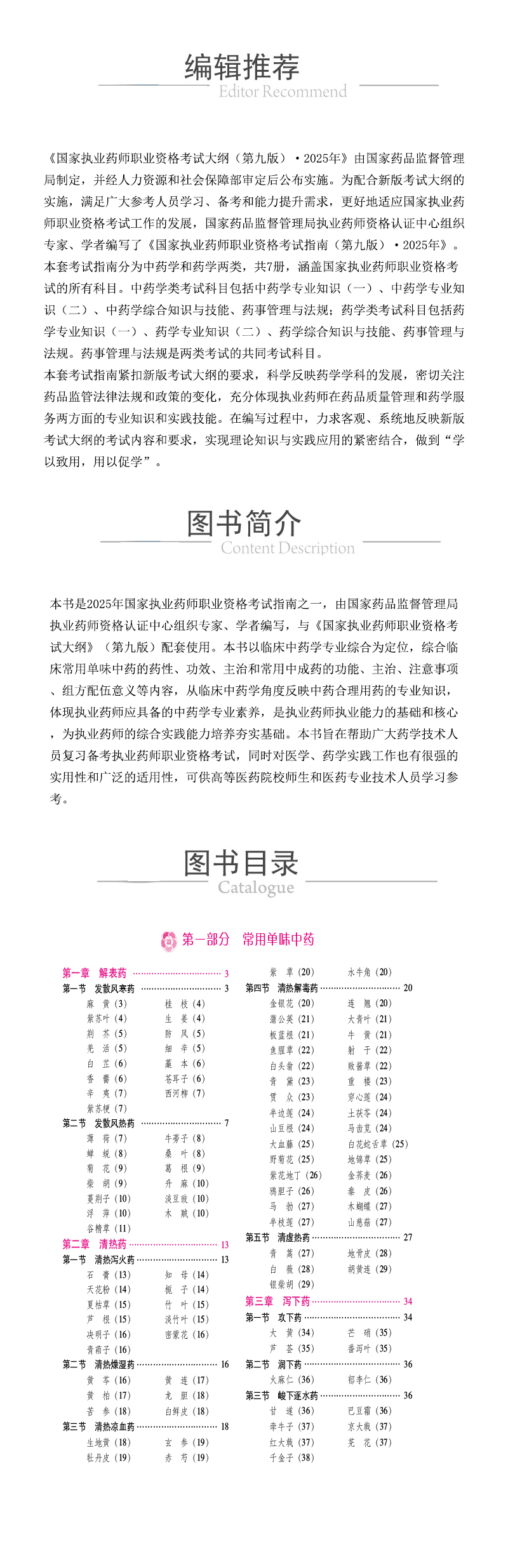 书名:2025中药学专业知识(二)第九版 国家执业药师职业资格考试指南