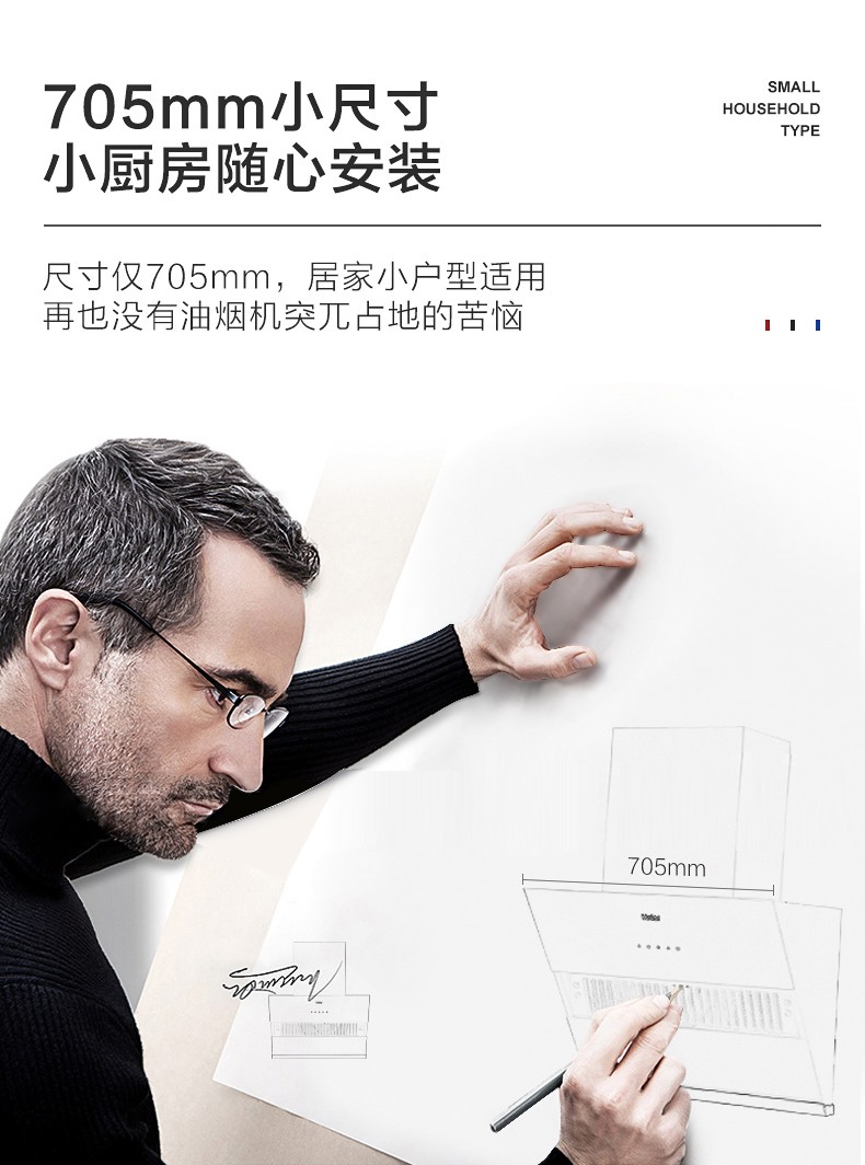 海尔(Haier)家用油烟机小尺寸705mm抽油烟机侧吸式大吸力吸油烟机低噪CXW-219-C1501