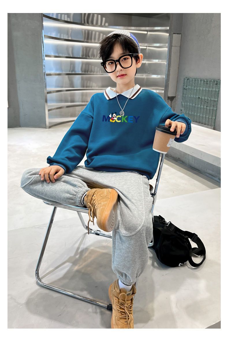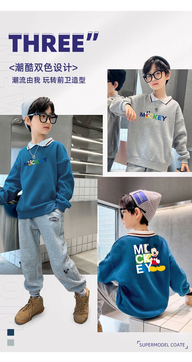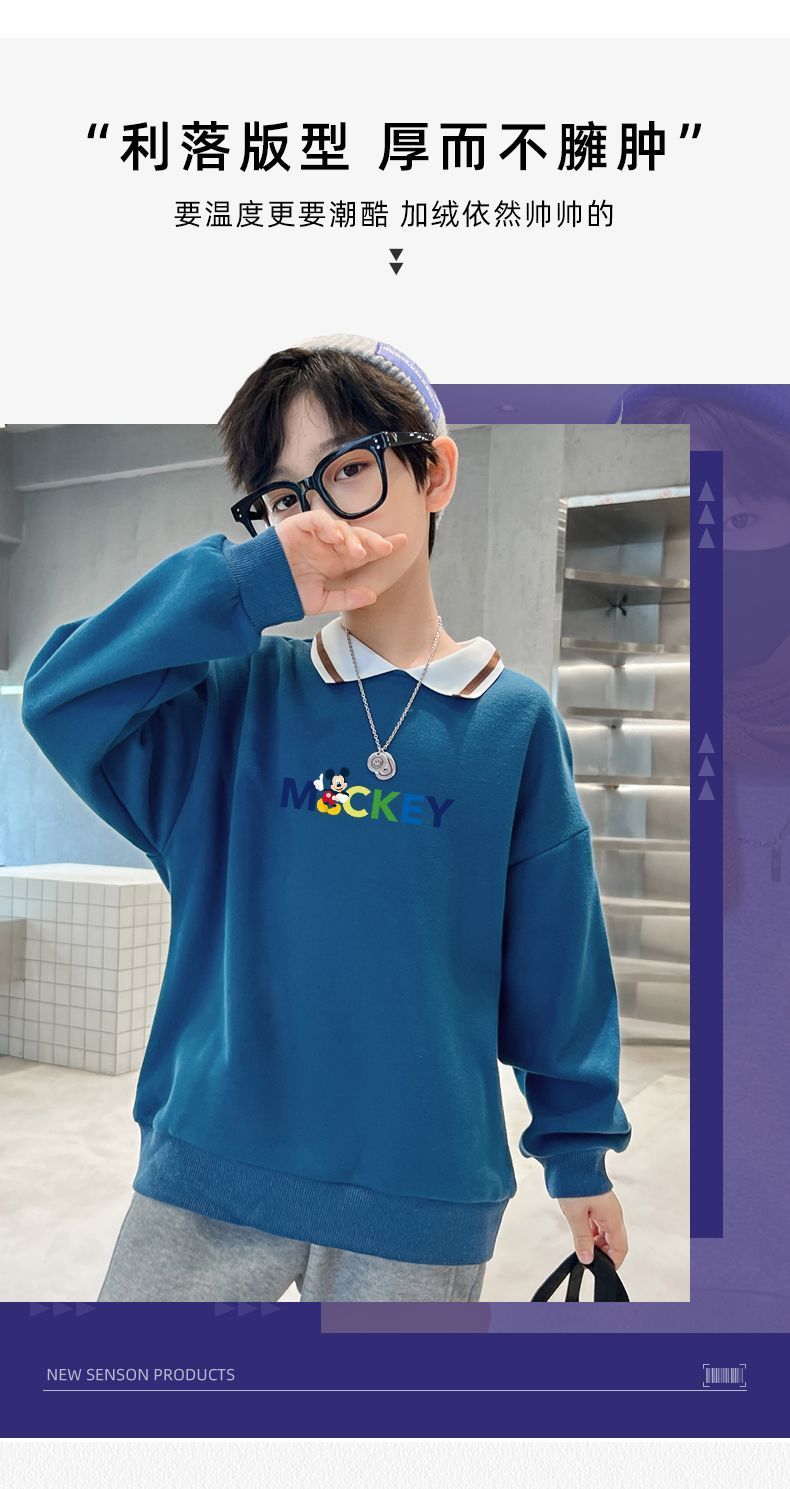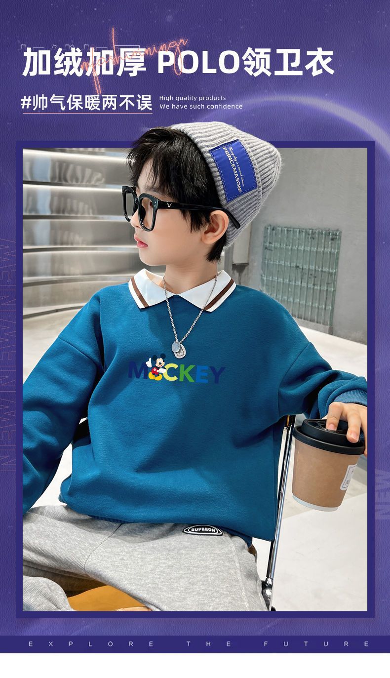迪士尼儿童卫衣加绒一体绒炸街洋气男童打底衫秋冬装外穿加厚潮酷