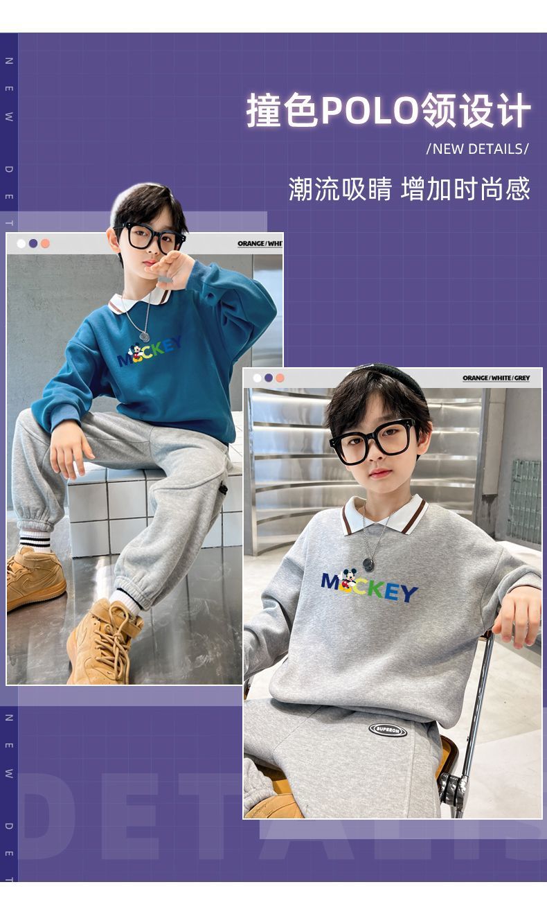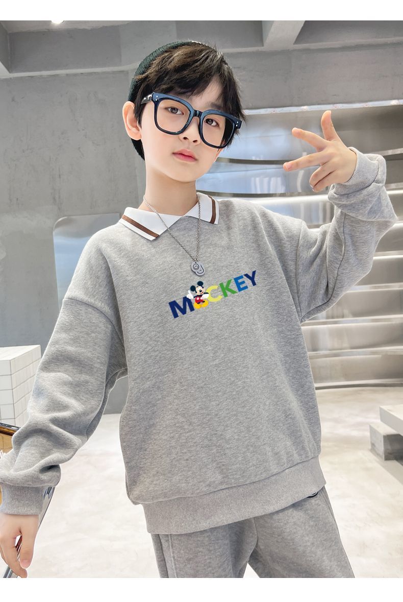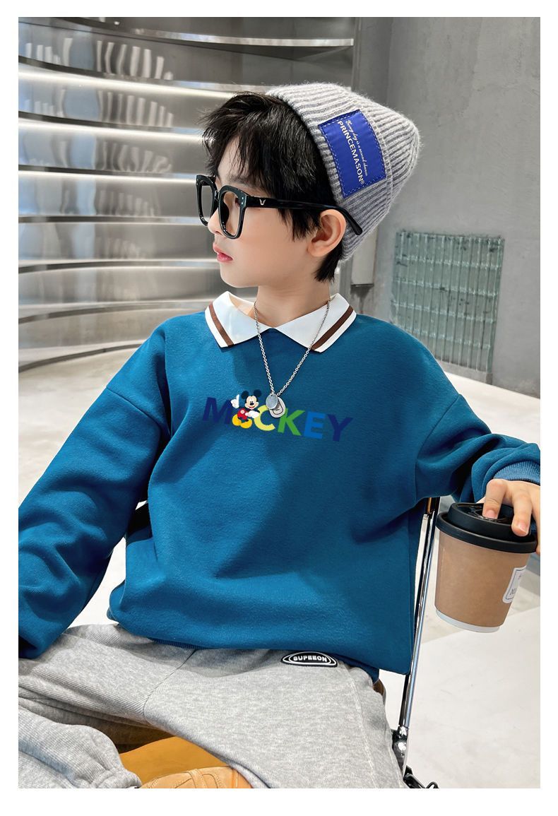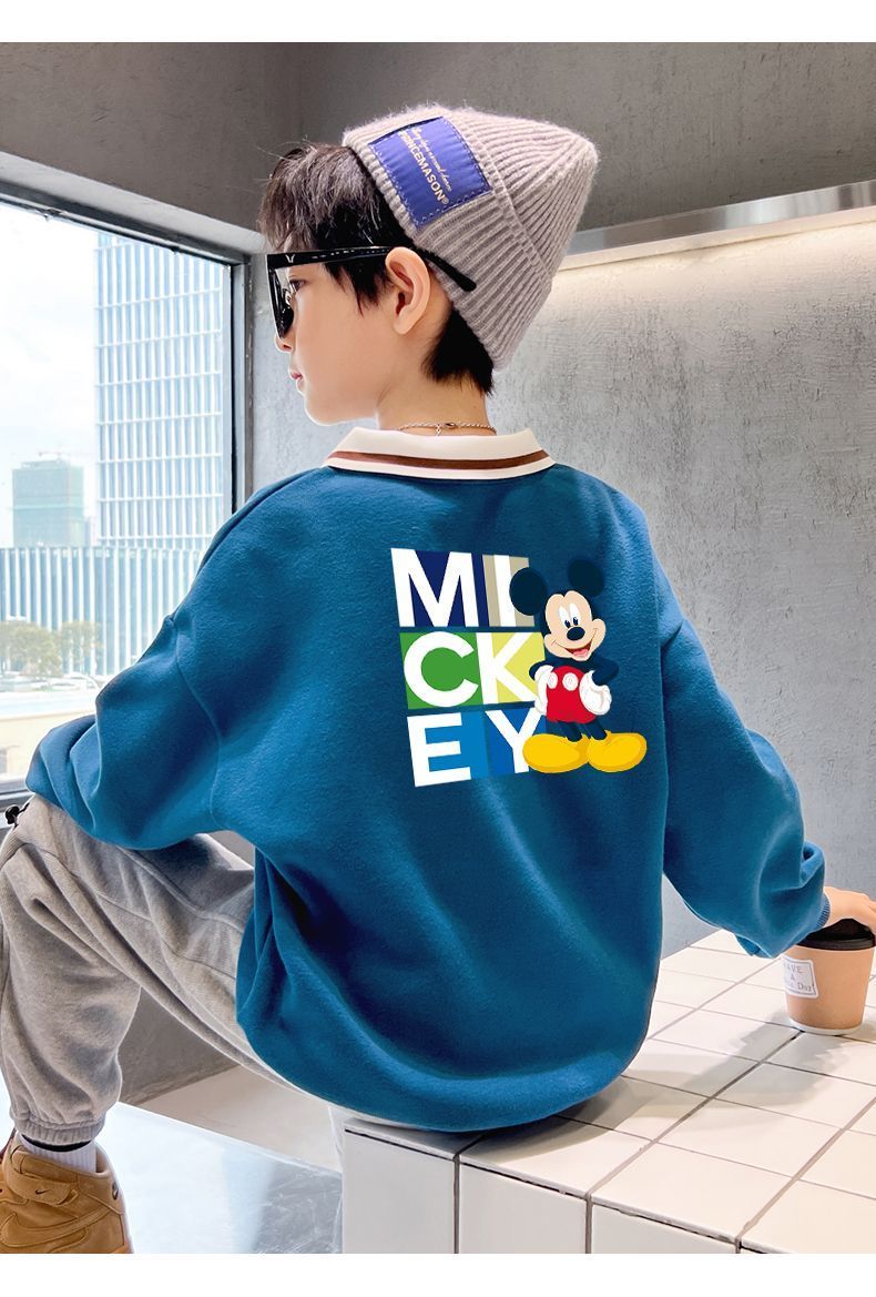 迪士尼儿童卫衣加绒一体绒炸街洋气男童打底衫秋冬装外穿加厚潮酷
