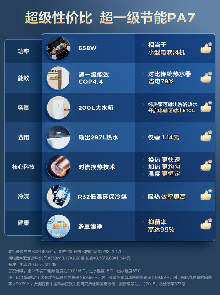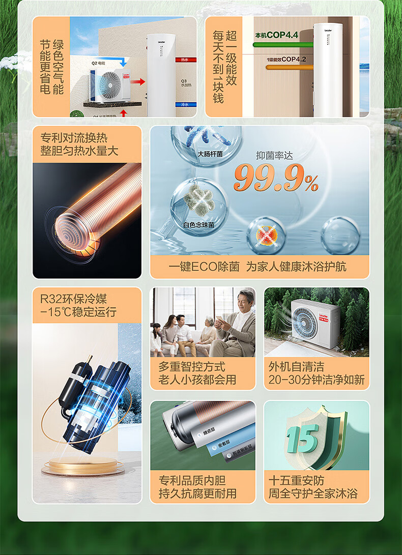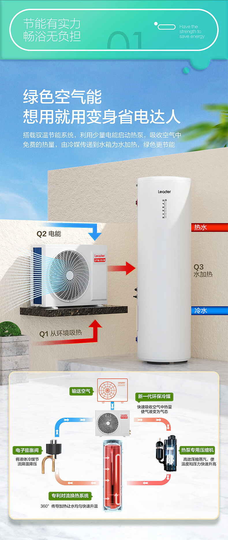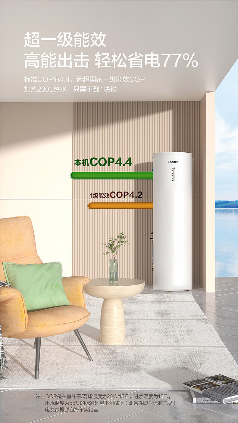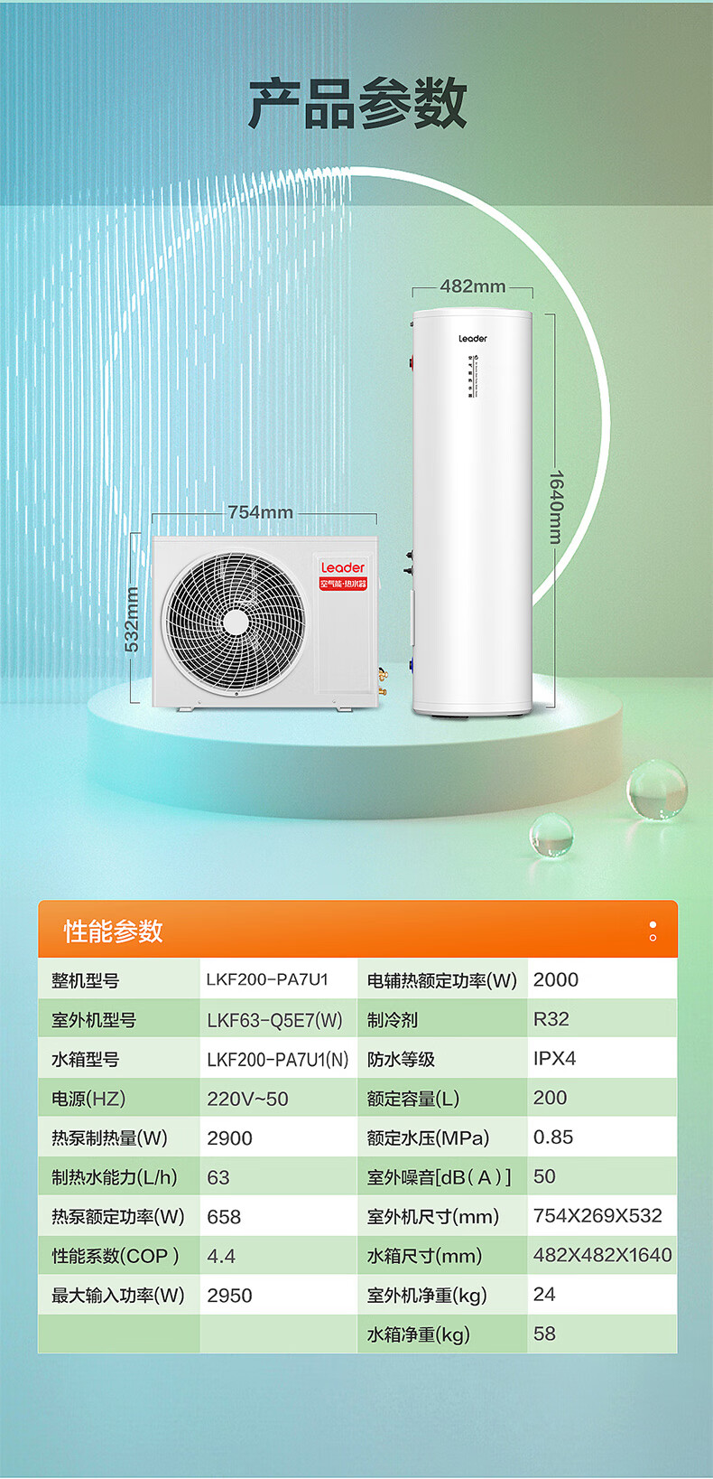 海尔(Haier)智家出品Leader空气能热水器200升包安装 一级能效电辅南北通用升级R32冷媒WiFi PA7U1(4-6人)