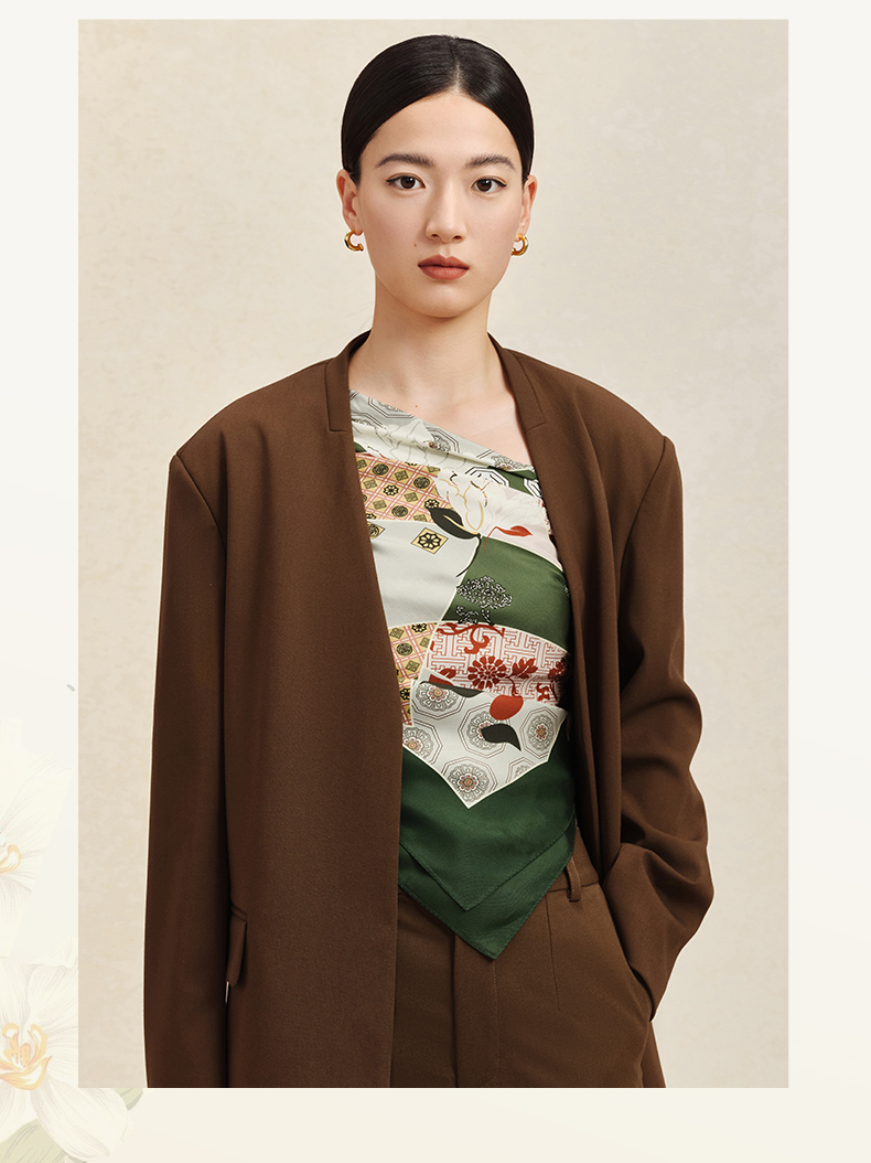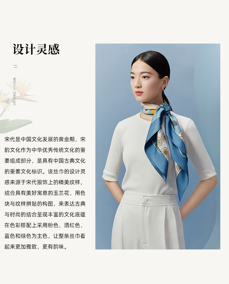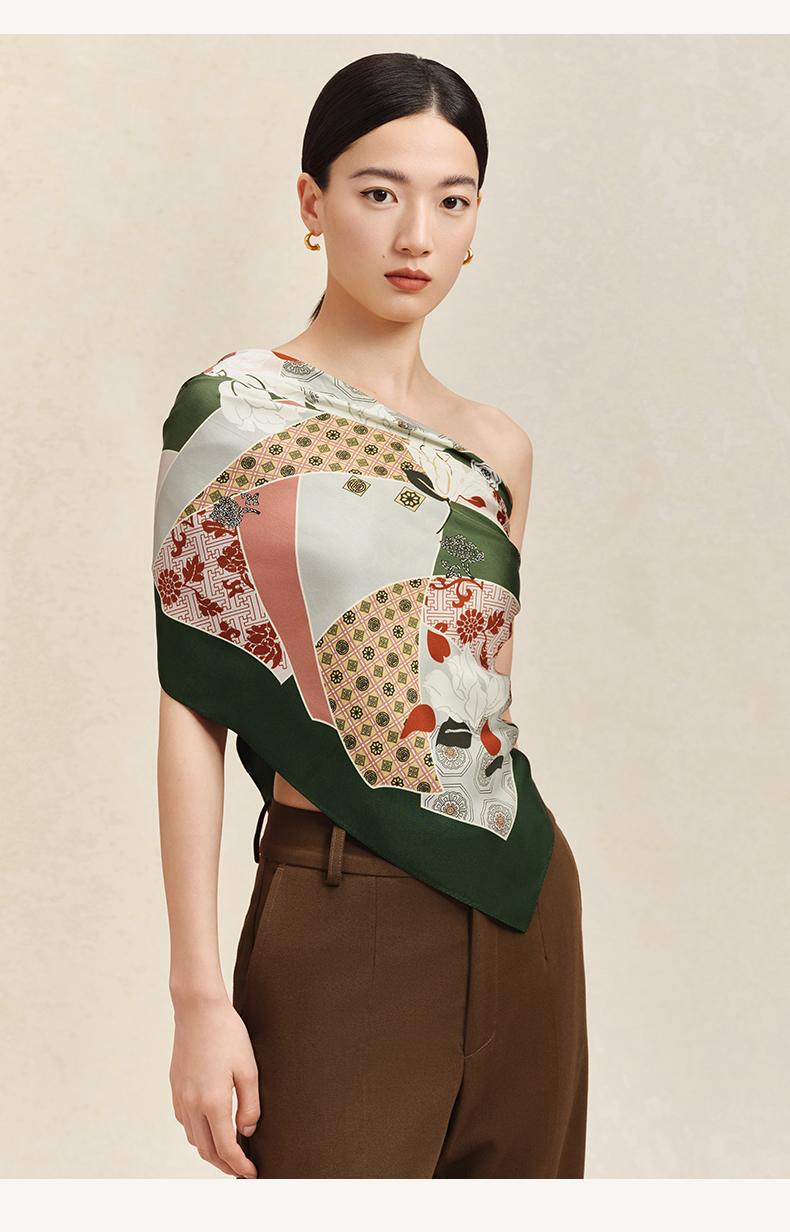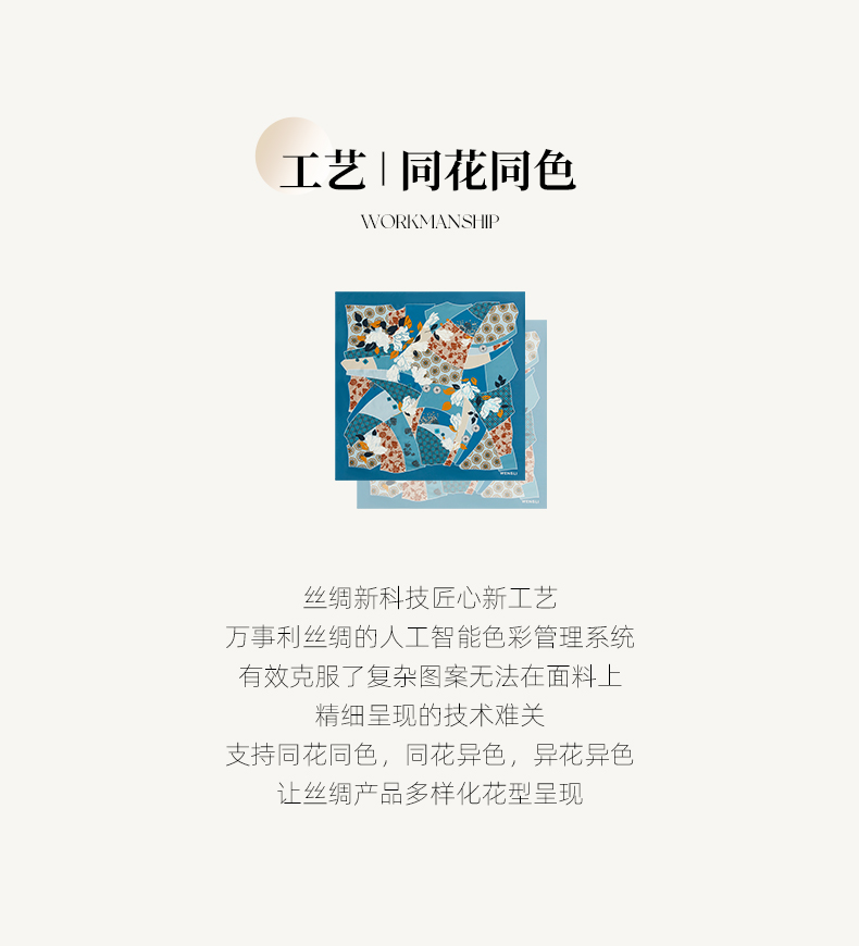万事利“锦绣风雅”88厘米双面印花真丝大方巾