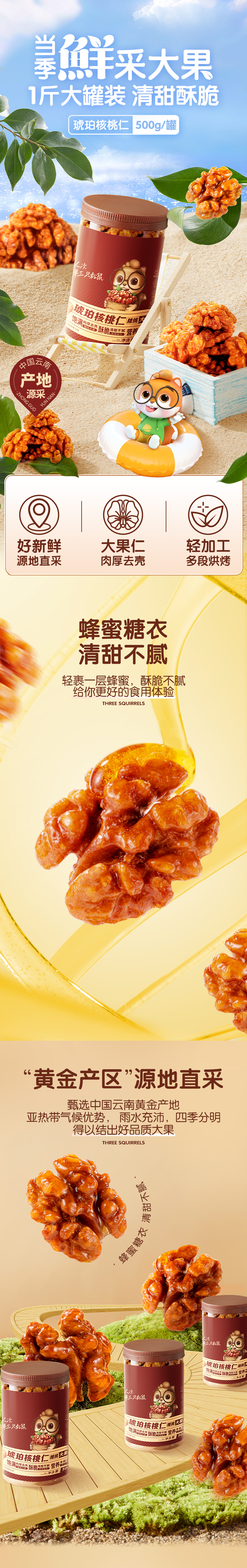 【爆款直降】【三只松鼠】罐装坚果_琥珀核桃仁/++/500g-fx