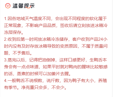 线下商超同步在售,全国人气王,鲜、香、嫩、滑、辣!可能不懂吃鸭舌的人只会觉得贵,但你去线下买就会知道鸭舌只会一年比一年贵!我们今天单盒500克 到手价才138元,直接对标线下门店对半折! 实现鸭货自由 送朋友/长辈/伴手礼/夜宵/投喂都很合适,宅家自囤划算,老人小孩都很适合吃的高蛋白食品!