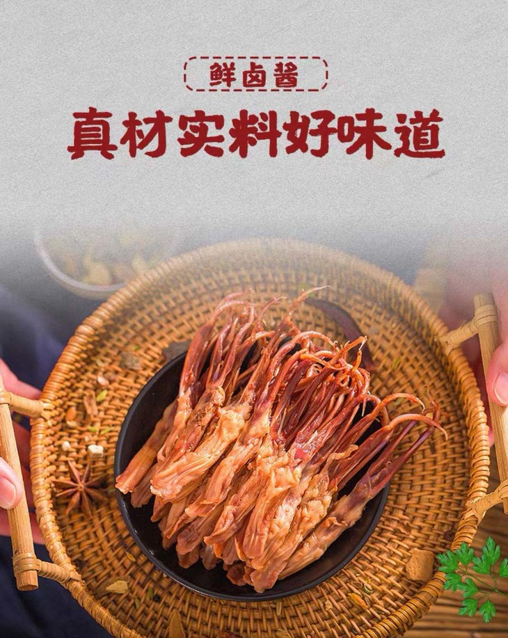 全新独特的制作工艺,为您带来前所未有的味觉盛宴!品质鸭舌,乡村美食,独特风味,让您感受传统口感的新奇体验! 精选大个头鸭舌,独家配料,精心卤煮,鸭舌脆软鲜香,咸甜适中,肉质细嫩,玲珑肥美,柔滑而富有弹性,嚼起来还带有一点点舌尖软滑。