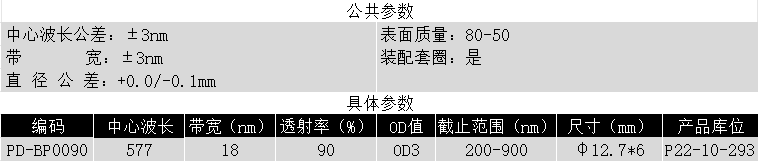 BP577/18K OD3@200-900 T>90% Φ12.7*6 带通滤光片 (带套圈)