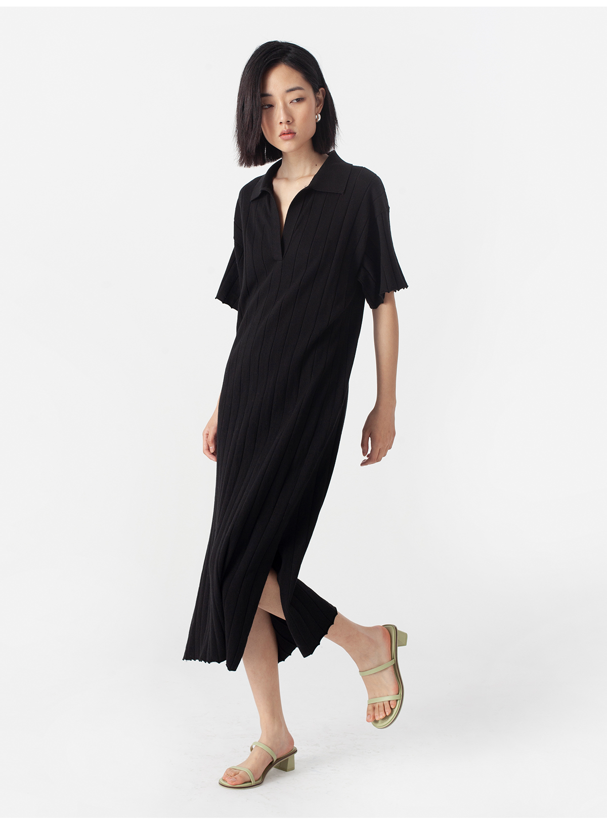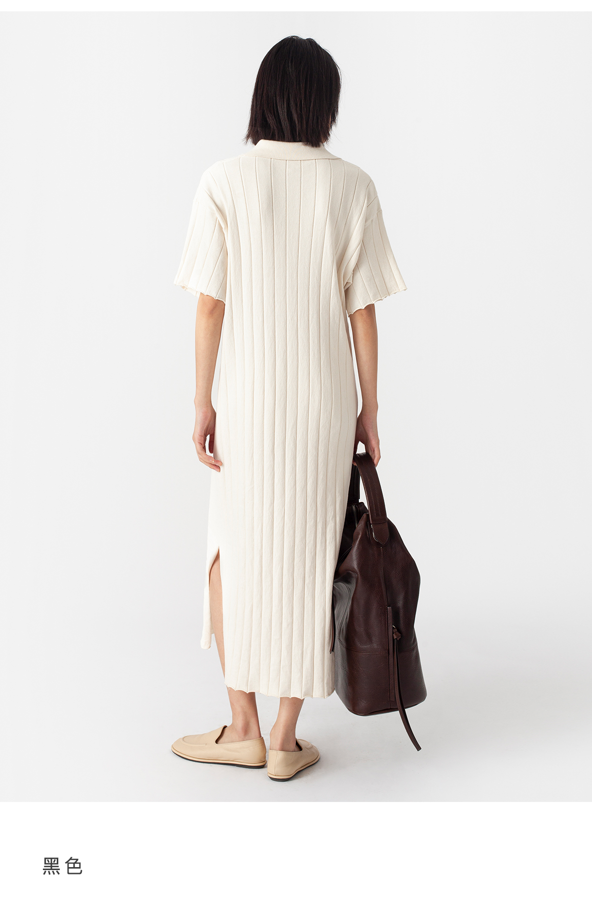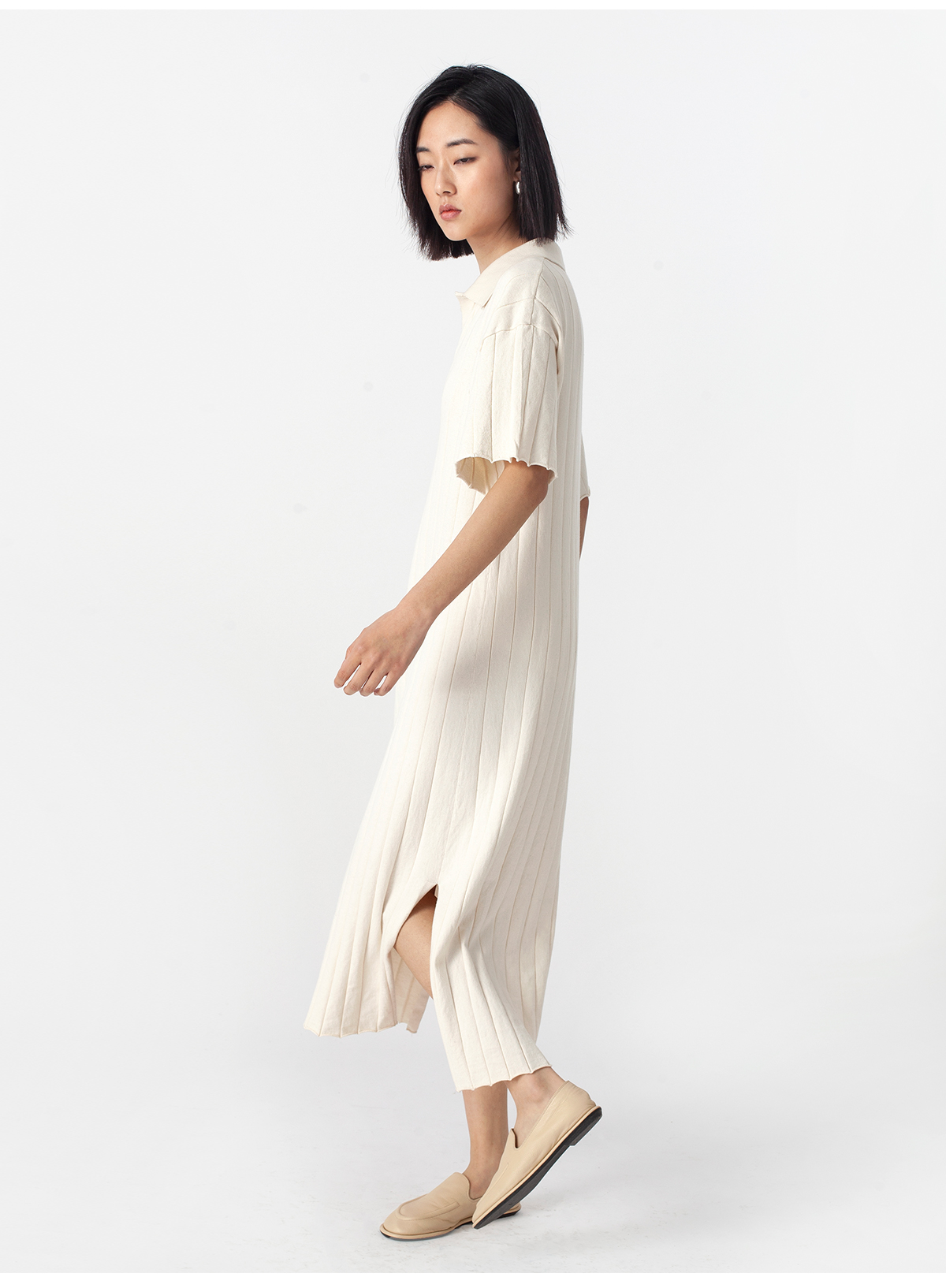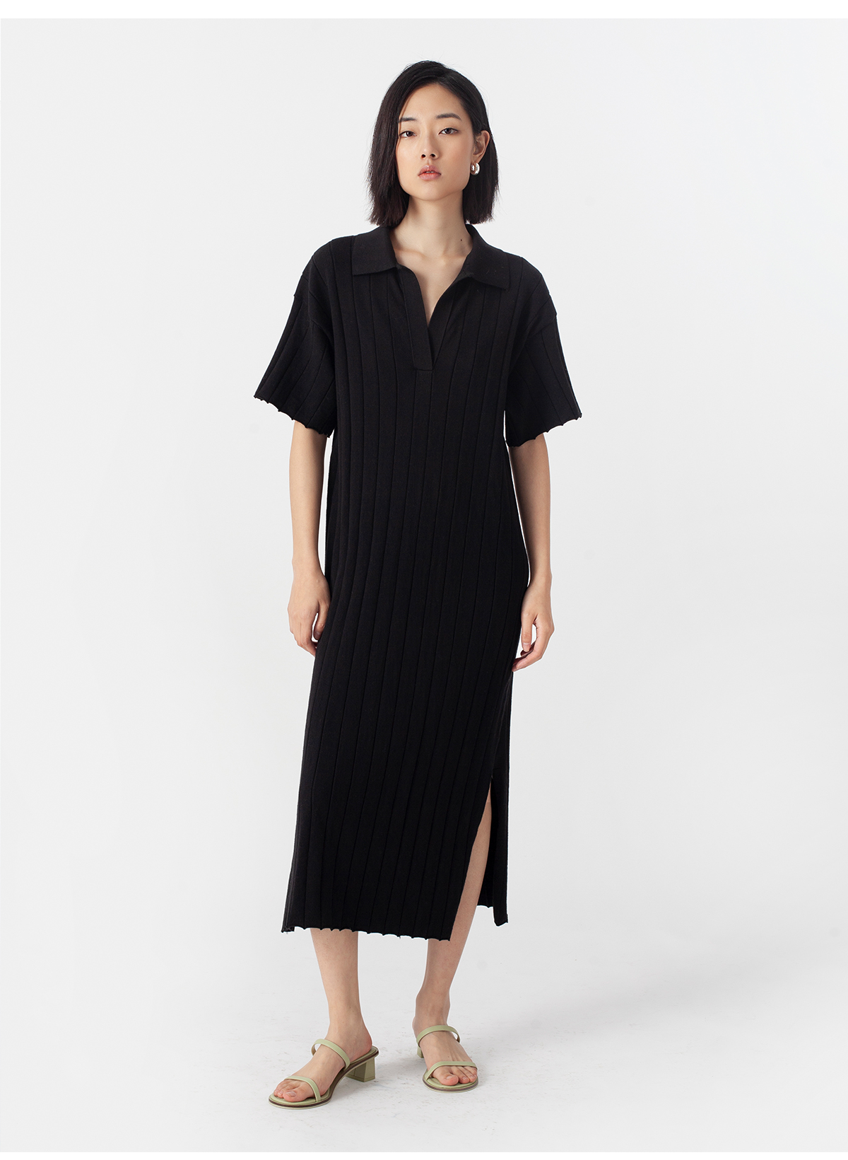 322工房质感棉羊绒坑条针织连衣裙2023春夏经典polo领长裙女B025