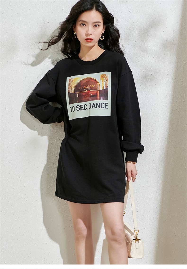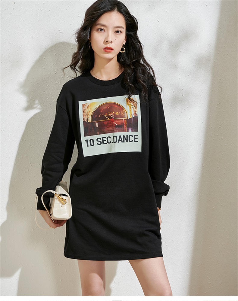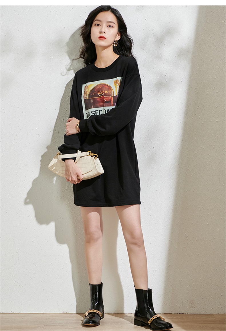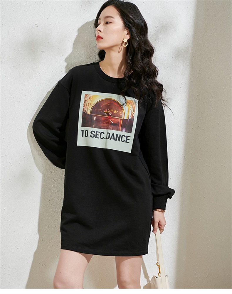 剩S/XL 芳外春季新款潮流印花套头卫衣裙时尚宽松休闲长袖连衣裙2055