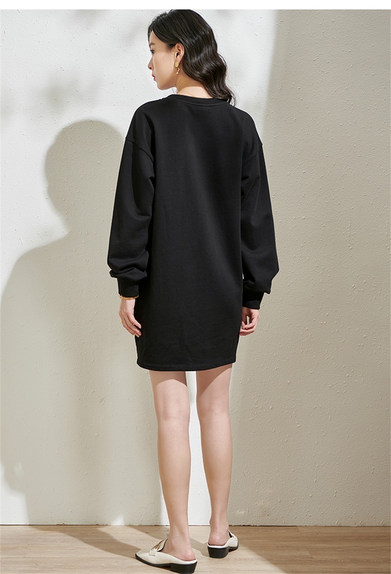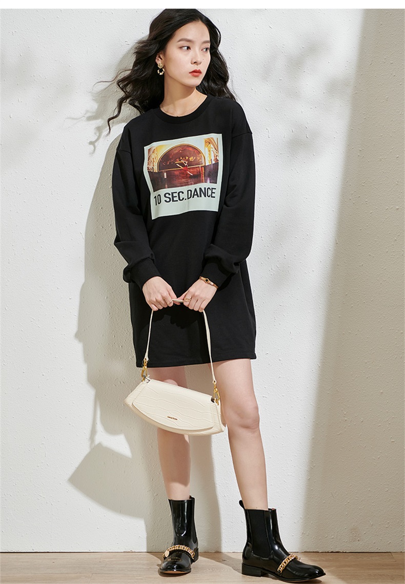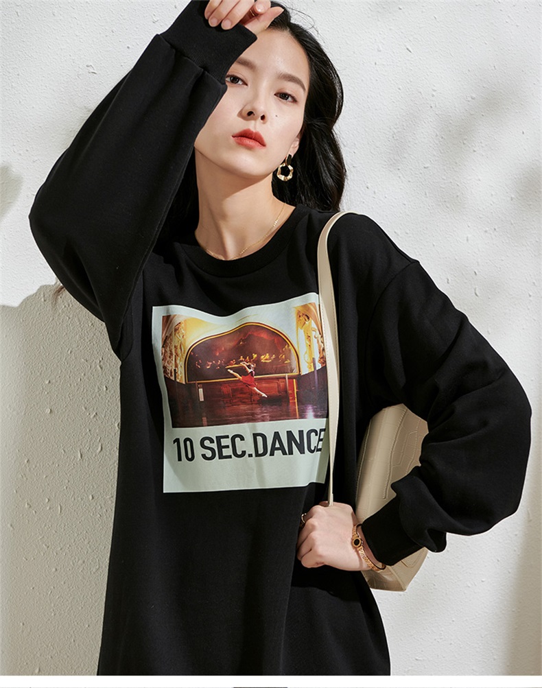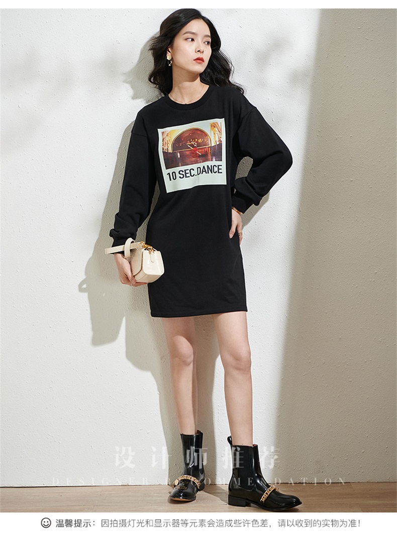 剩S/XL 芳外春季新款潮流印花套头卫衣裙时尚宽松休闲长袖连衣裙2055