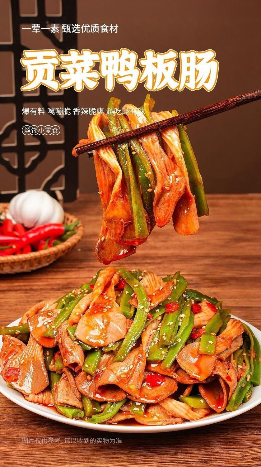 【聚划算❗️9.9抢整袋🔥贡菜鸭板肠】脆嫩贡菜+弹韧鸭板肠,一口双重口感,脆弹交织不单调,鲜辣过瘾追剧解馋小零食一荤一素QQ