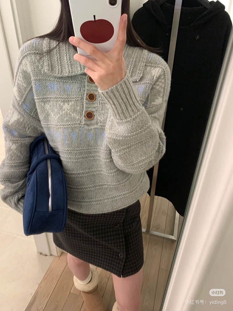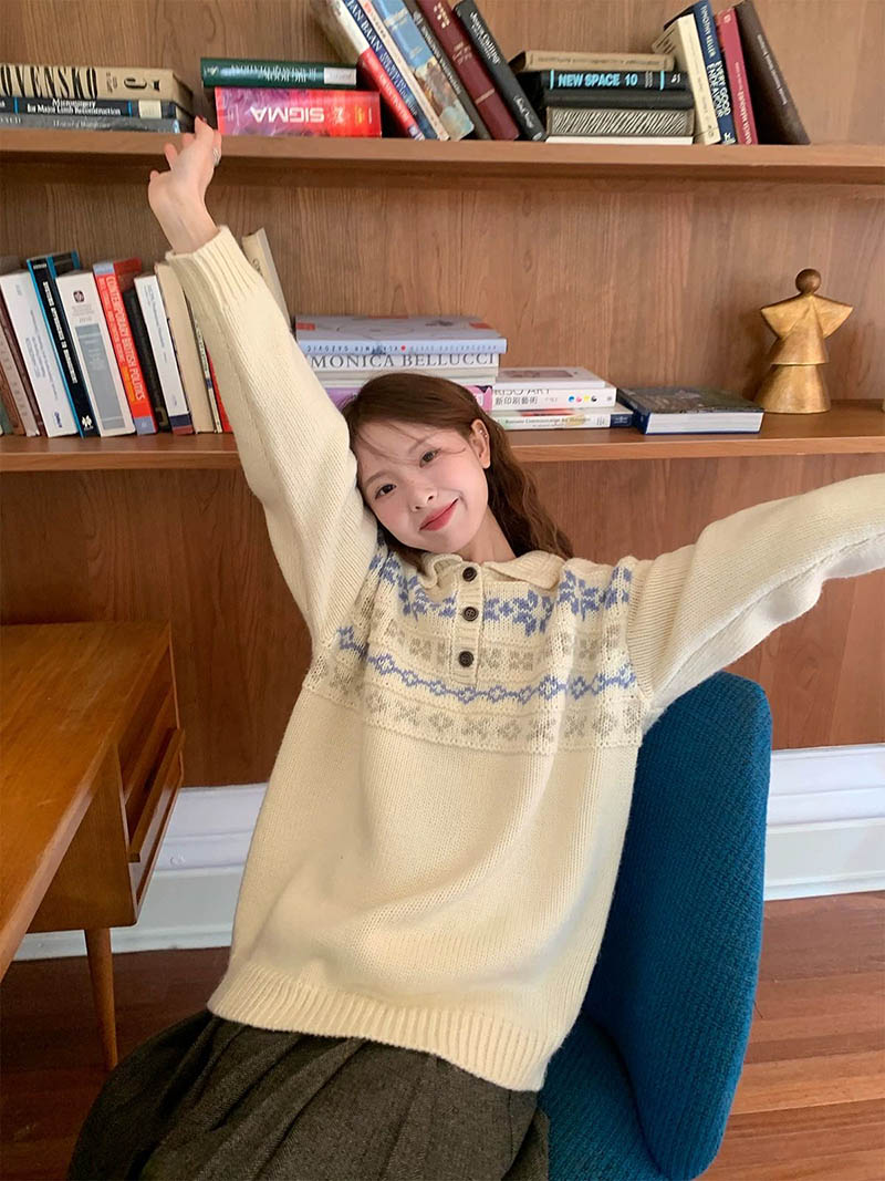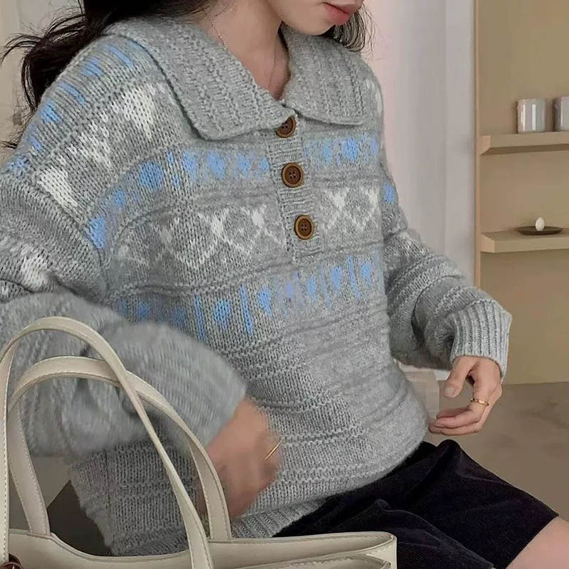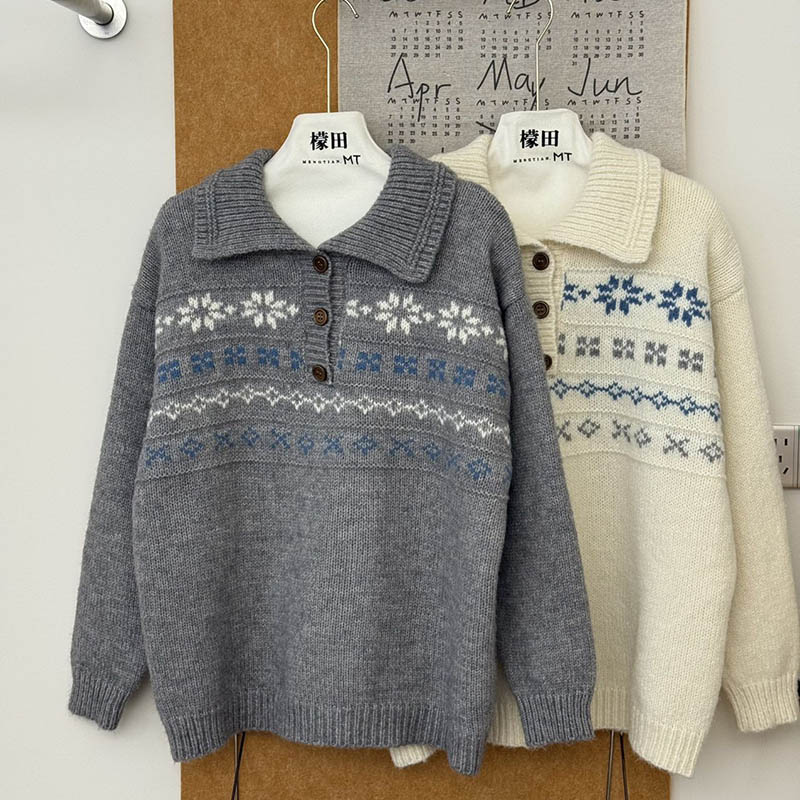 YW复古费尔岛翻领提花毛衣(LH)(LD)-纪念日百货167098417