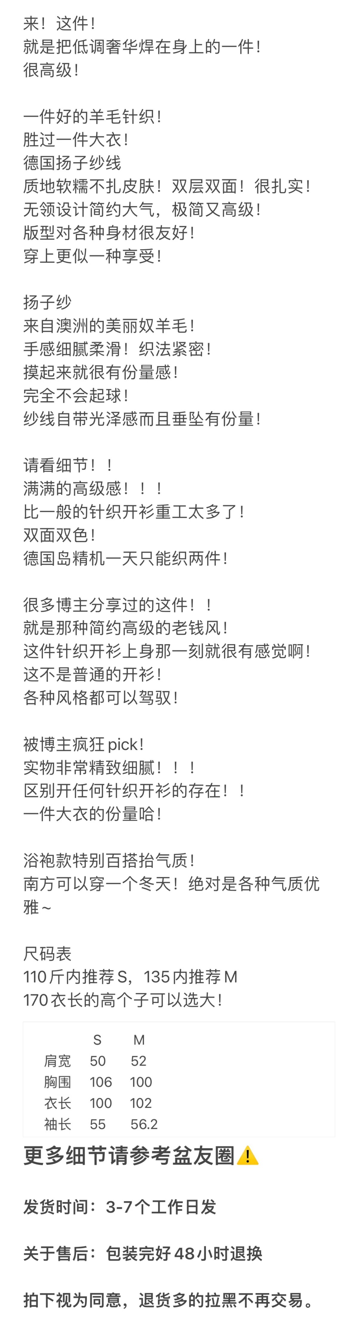 自留推荐!德国扬子开衫外套 黑灰花纱 极简重磅 超密加厚 万年经典款